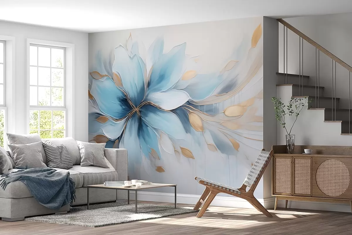 zidne murale Apstraktni plavi cvijet smirenosti s lišćem w09500