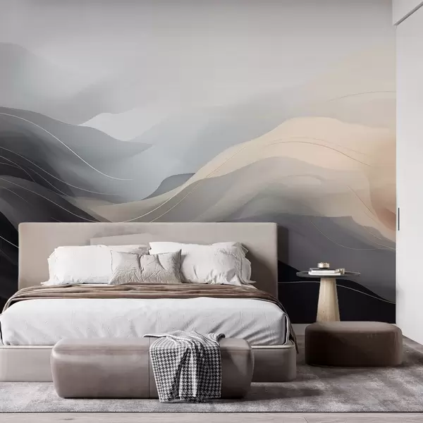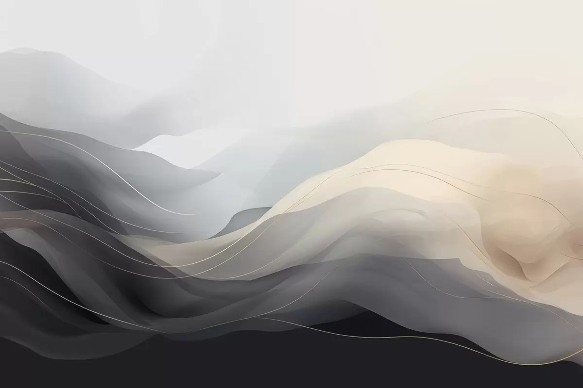 Zidne murale Apstraktni magloviti valovi u sivo-krem tonovima sa žutim linijama br. w09504