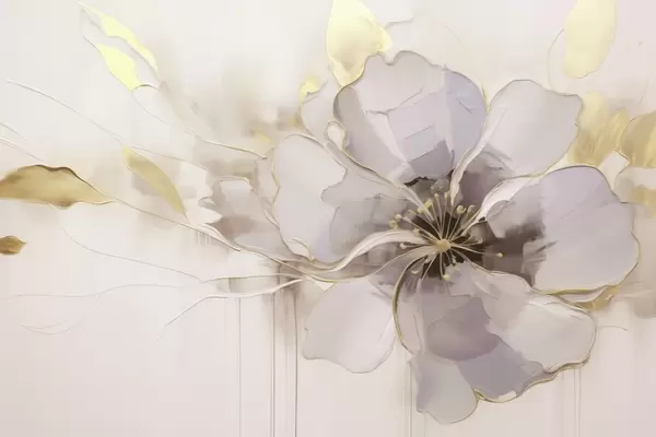 Zidne murale Plavi cvijet sa žutim naglascima u apstraktnom stilu poteza kistom br. w09505