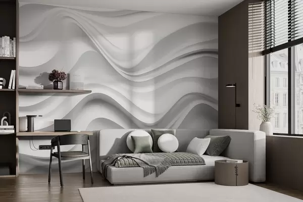Zidne murale Crno-bijela apstraktna 3D kompozicija s glatkim valovima br. w09506