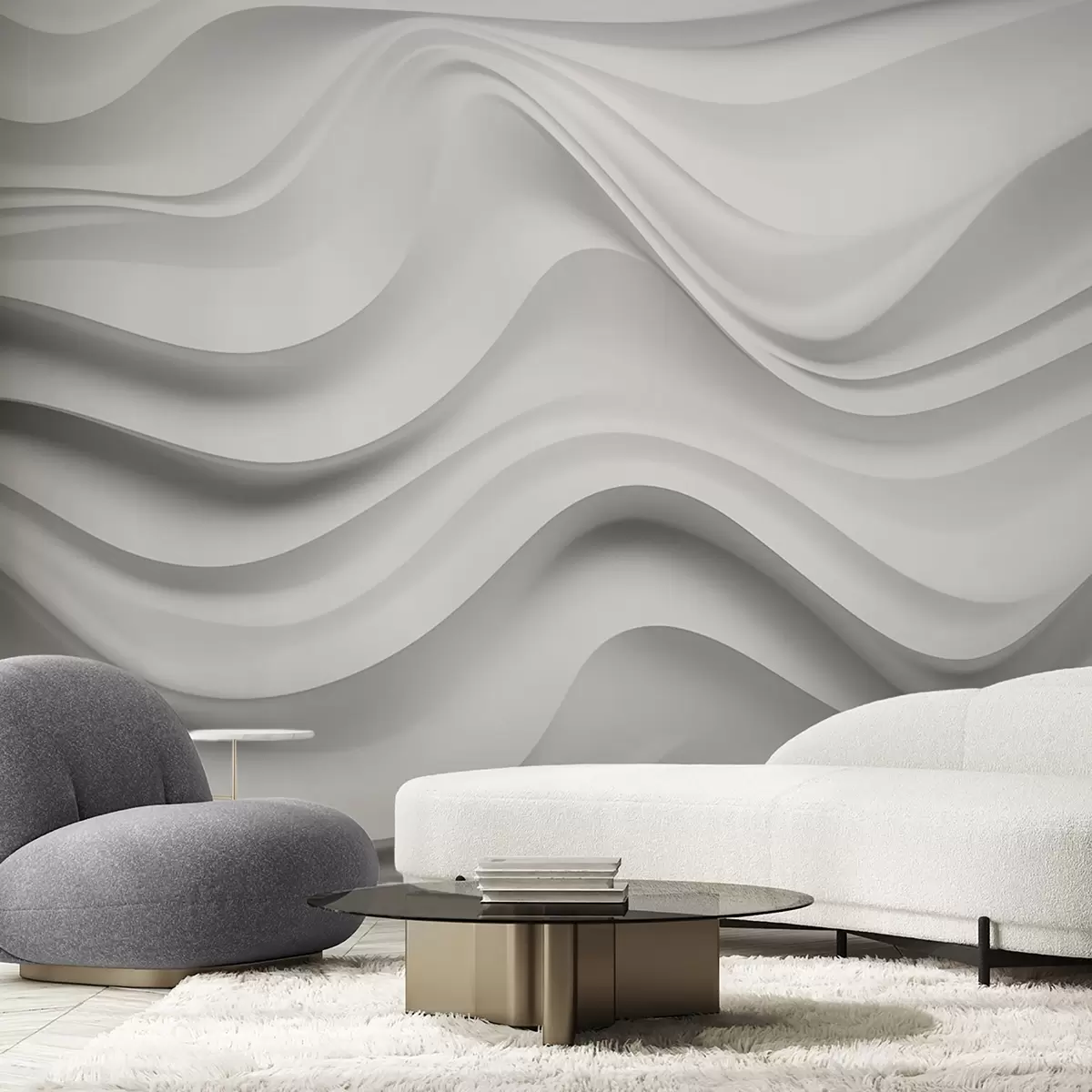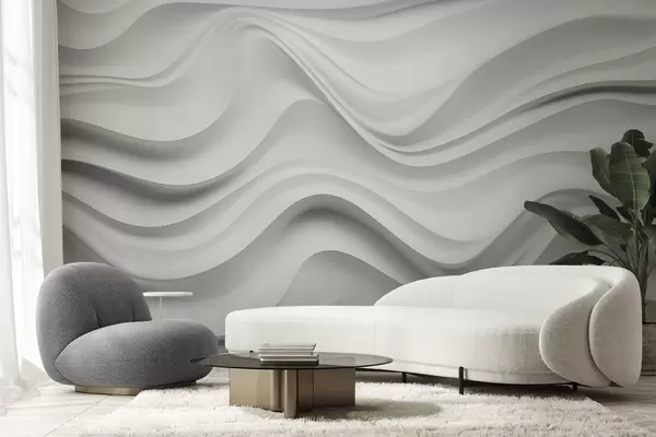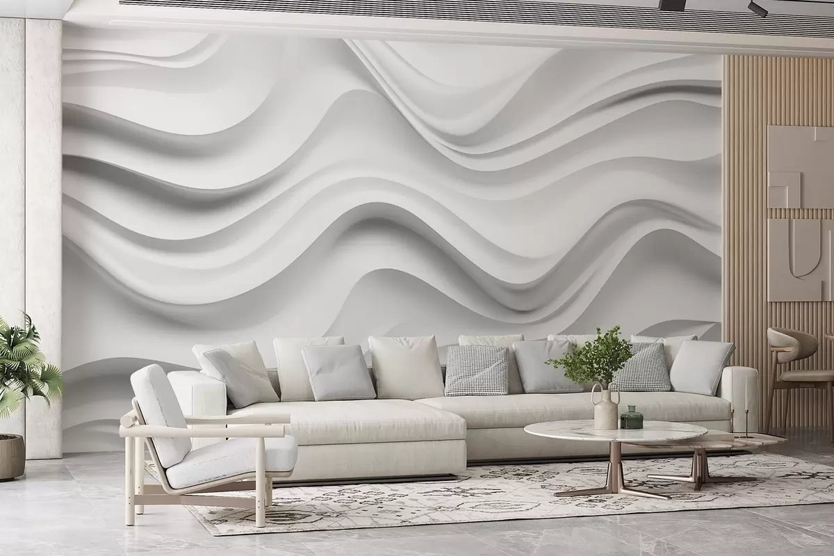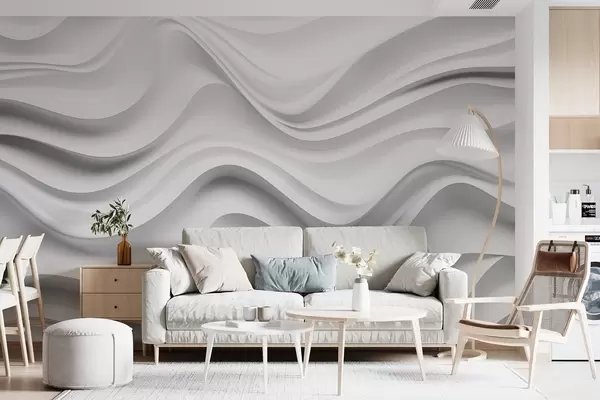 Zidne murale Crno-bijela apstraktna 3D kompozicija s glatkim valovima br. w09506