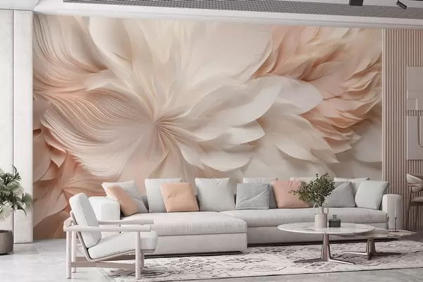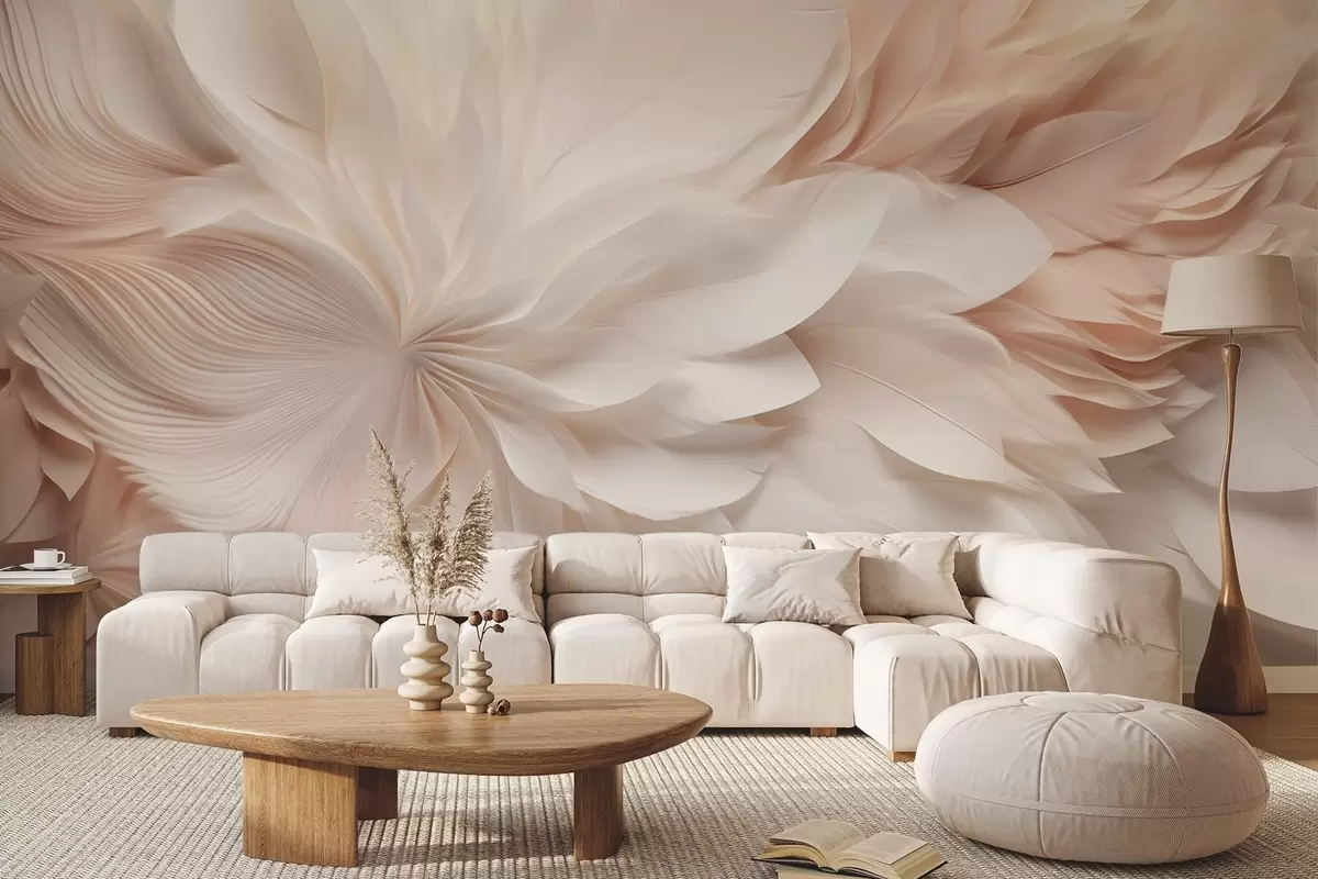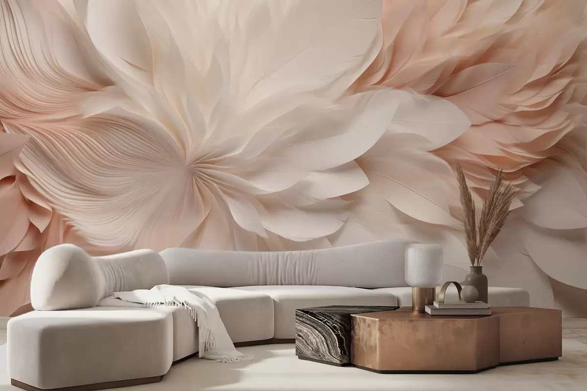 Zidne murale Nježno apstraktno perje u pokretu u bež i krem tonovima br. w09509