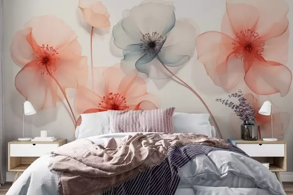 Zidne murale Prozirno cvijeće u crvenim i plavim tonovima br. w09515