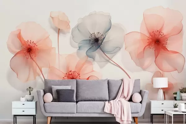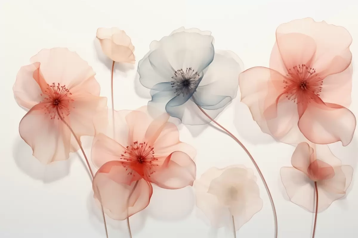 Zidne murale Prozirno cvijeće u crvenim i plavim tonovima br. w09515