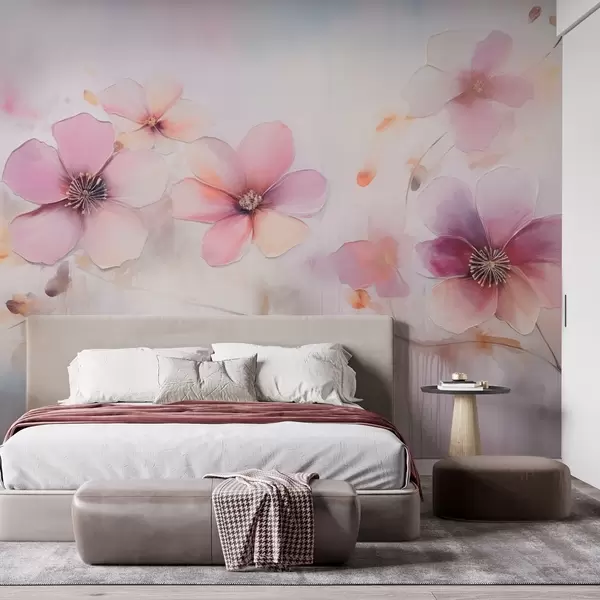 Zidne murale Grana s ružičastim cvijećem u stilu akvarela br. w09522