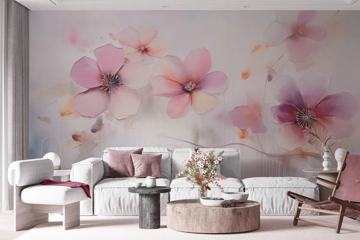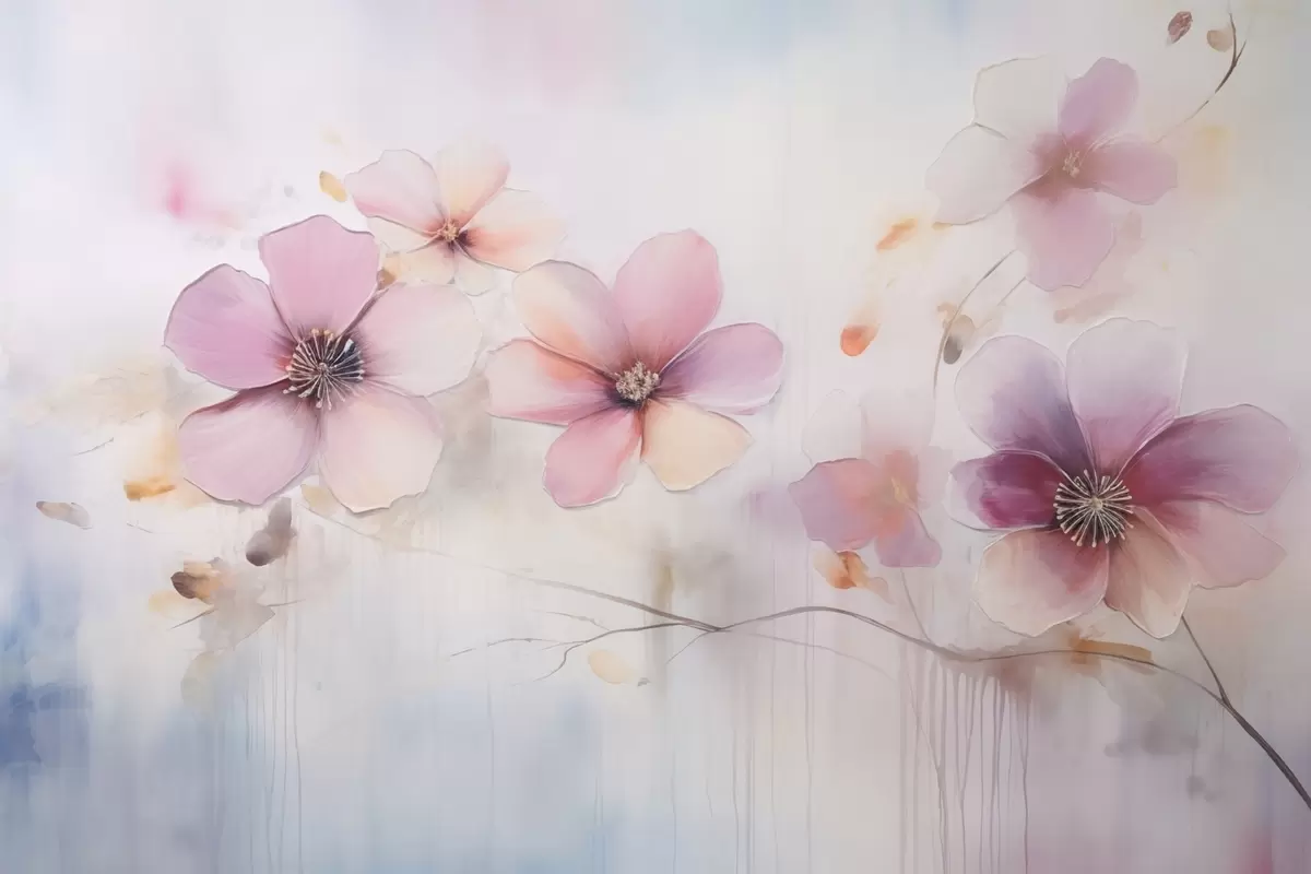Zidne murale Grana s ružičastim cvijećem u stilu akvarela br. w09522