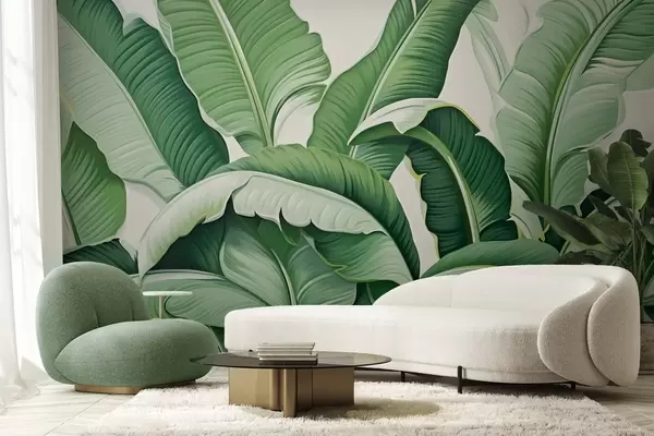 Zidne murale Zeleni tropski listovi banane s 3D efektom br. w09559