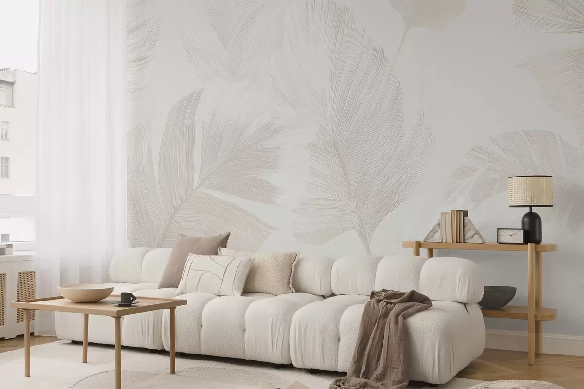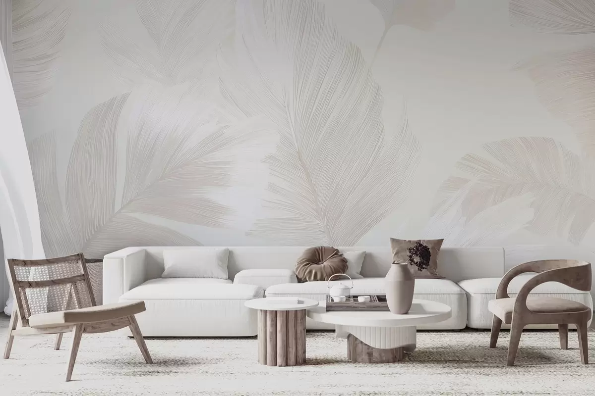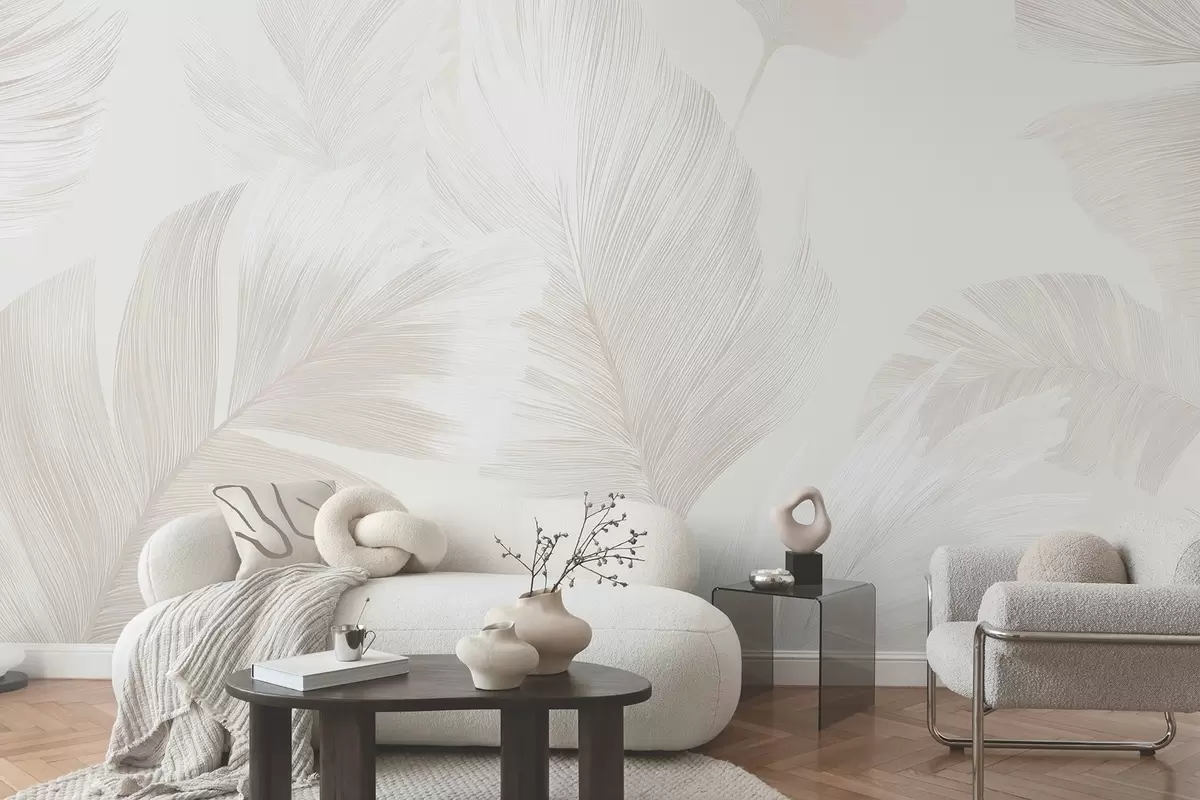 Zidne murale Meko bjelokosno perje u mliječno bež tonovima br. w09563