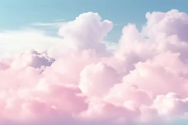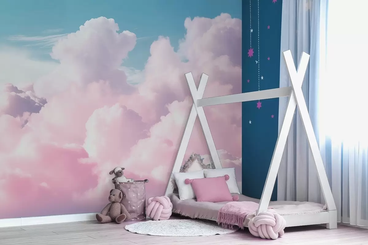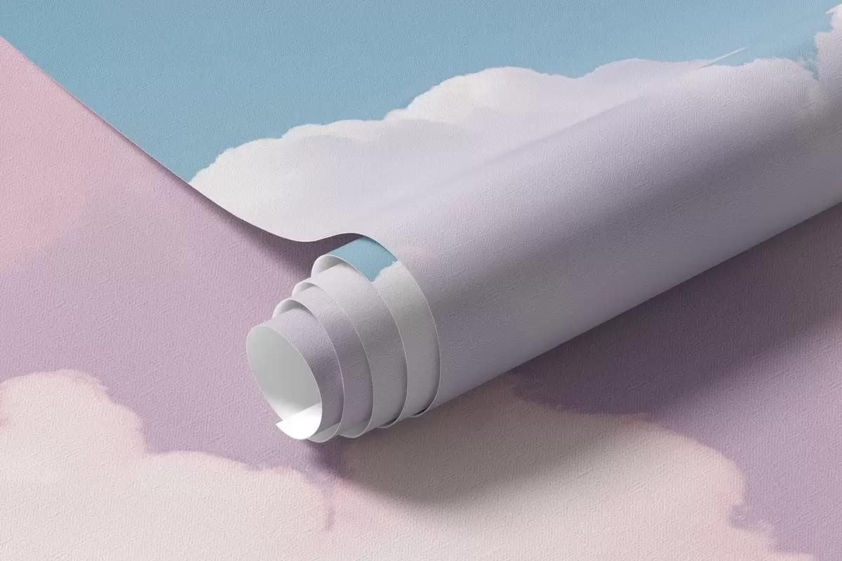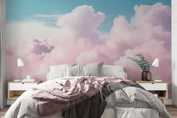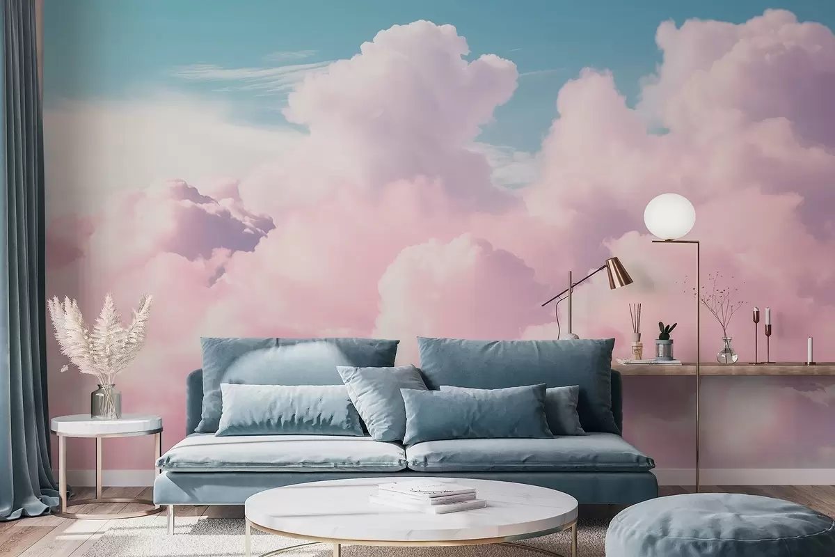 Zidne murale Meki, prozračni ružičasti oblaci na plavom nebu br. w09569