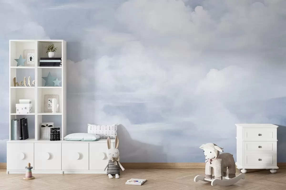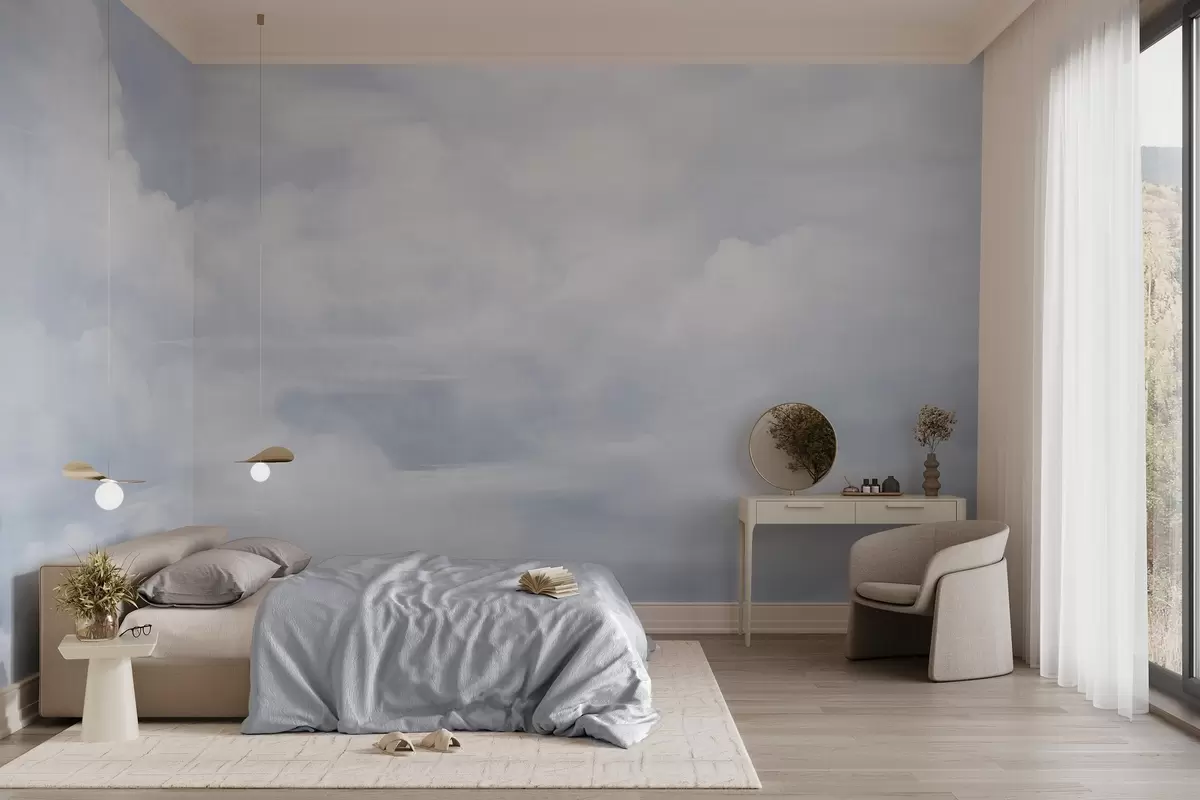 Zidne murale Pastelno teksturirano nebo ispunjeno bijelim oblacima s mekom i minimalističkom estetikom br. w09589