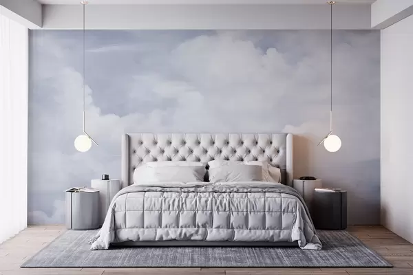 Zidne murale Pastelno teksturirano nebo ispunjeno bijelim oblacima s mekom i minimalističkom estetikom br. w09589