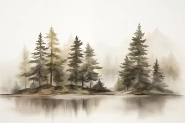 Zidne murale Teksturirana maglovita šuma s visokim borovima, imitacija slike br. w09610