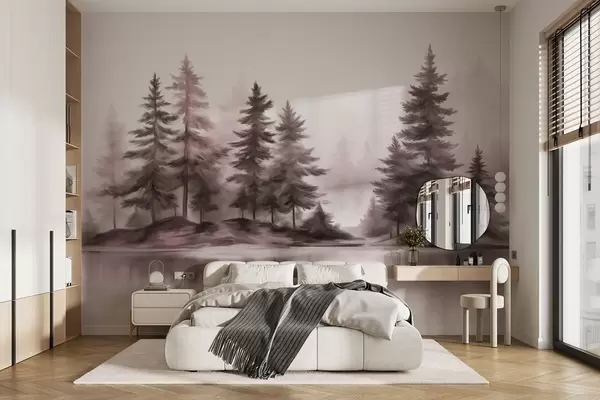 Zidne murale Teksturirana maglovita šuma s visokim borovima, imitacija slike br. w09610v1