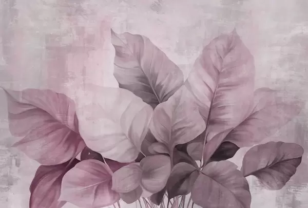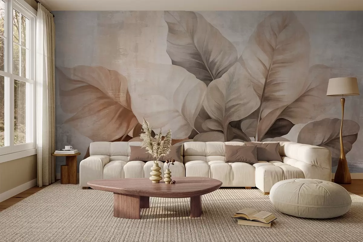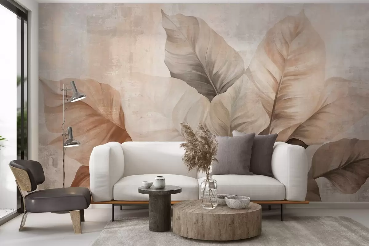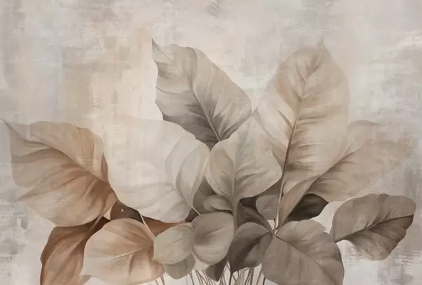 Zidne murale Teksturirana imitacija slikanja velikih, svijetlosmeđih listova na neutralnoj pozadini suptilnim potezima kista br. w09614
