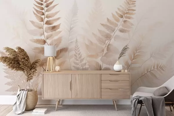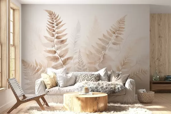 Zidne murale Teksturirani sušeni listovi paprati u raznim nijansama smeđe, s mekom, svijetlom pozadinom u stilu akvarela br. w09615