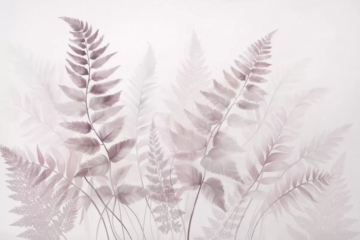 Zidne murale Teksturirani sušeni listovi paprati u raznim nijansama ružičaste, s mekom, svijetlom pozadinom u stilu akvarela br. w09615v2