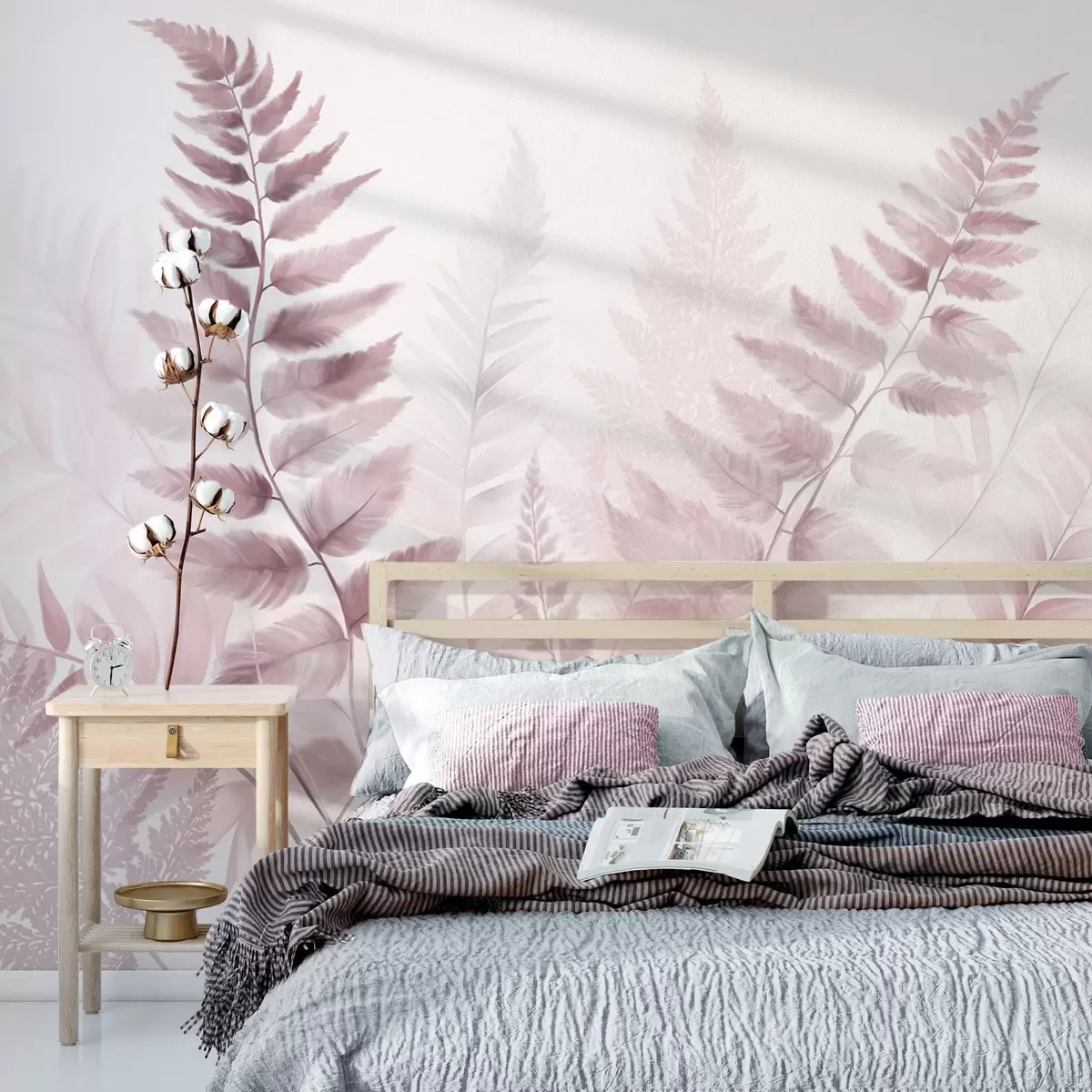 Zidne murale Teksturirani sušeni listovi paprati u raznim nijansama ružičaste, s mekom, svijetlom pozadinom u stilu akvarela br. w09615v2