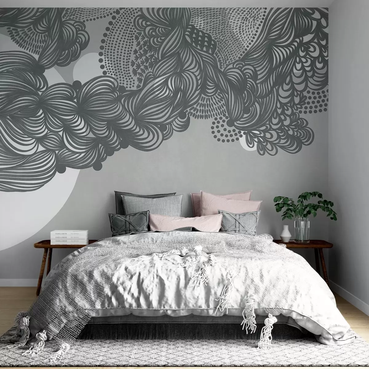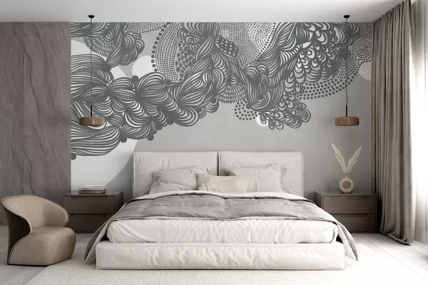 Zidne murale Apstraktni teksturirani dizajn na sivoj pozadini, sa zamršenim linijama i točkastim teksturama br. w09621v1