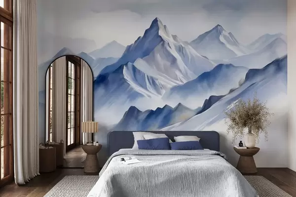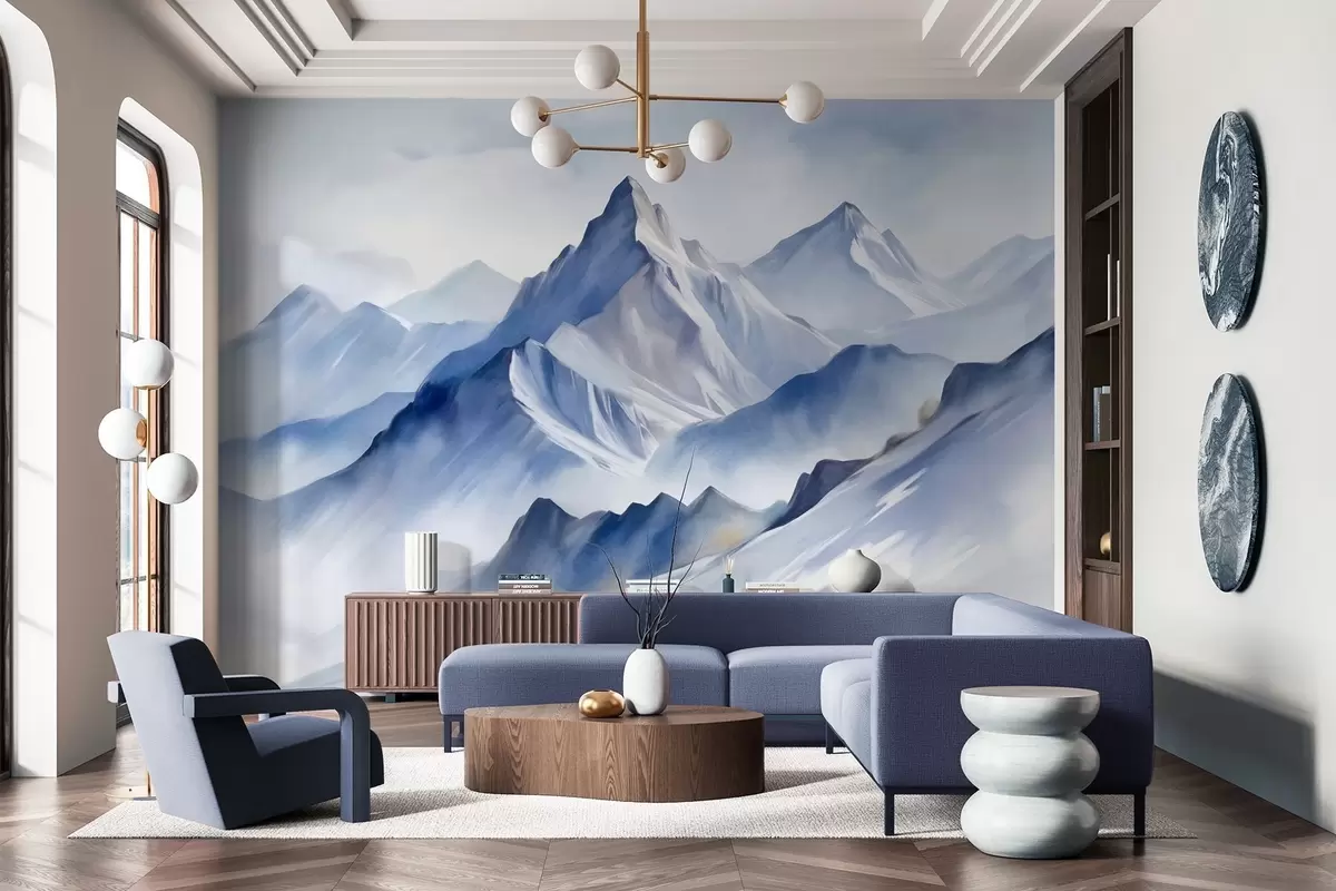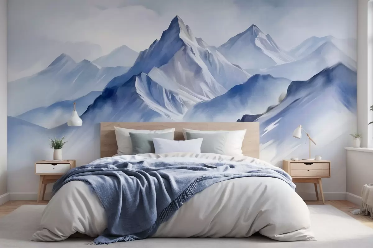 Zidne murale Teksturirane snježne planine s mekim, akvarelnim efektom i paletom plave i bijele boje br. w09630