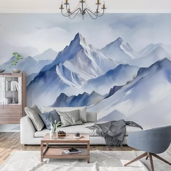 Zidne murale Teksturirane snježne planine s mekim, akvarelnim efektom i paletom plave i bijele boje br. w09630