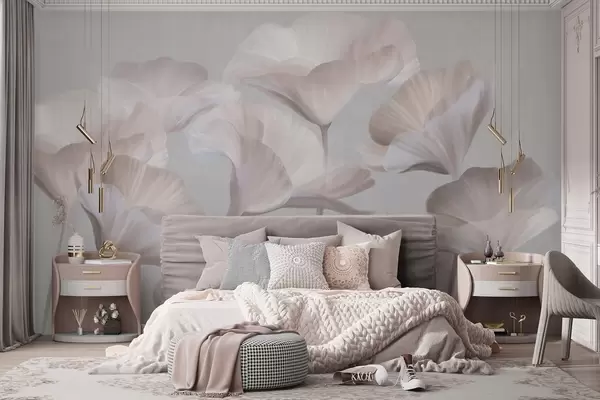 Zidne murale Blijedo breskvasto teksturirani prozirni lotosovi cvjetovi s nježnim laticama na prigušenoj sivoj pozadini br. w09640