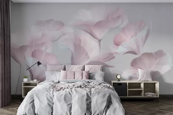 Zidne murale Blijedoružičasti teksturirani prozirni cvjetovi lotosa s nježnim laticama na prigušenoj sivoj pozadini br. w09640v1