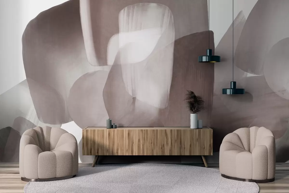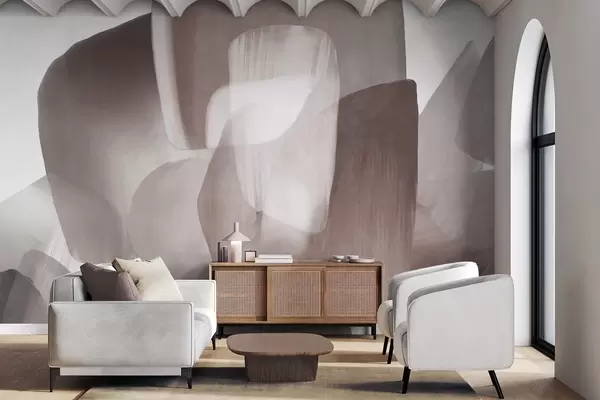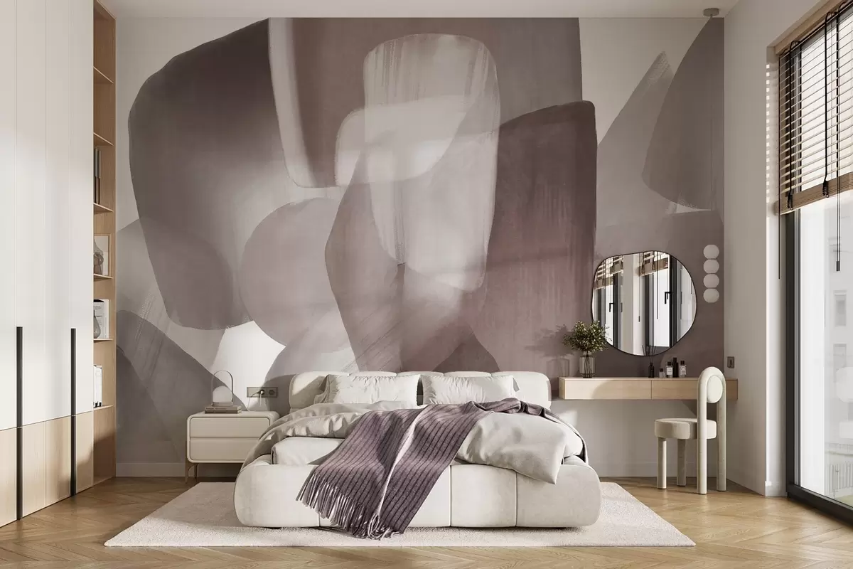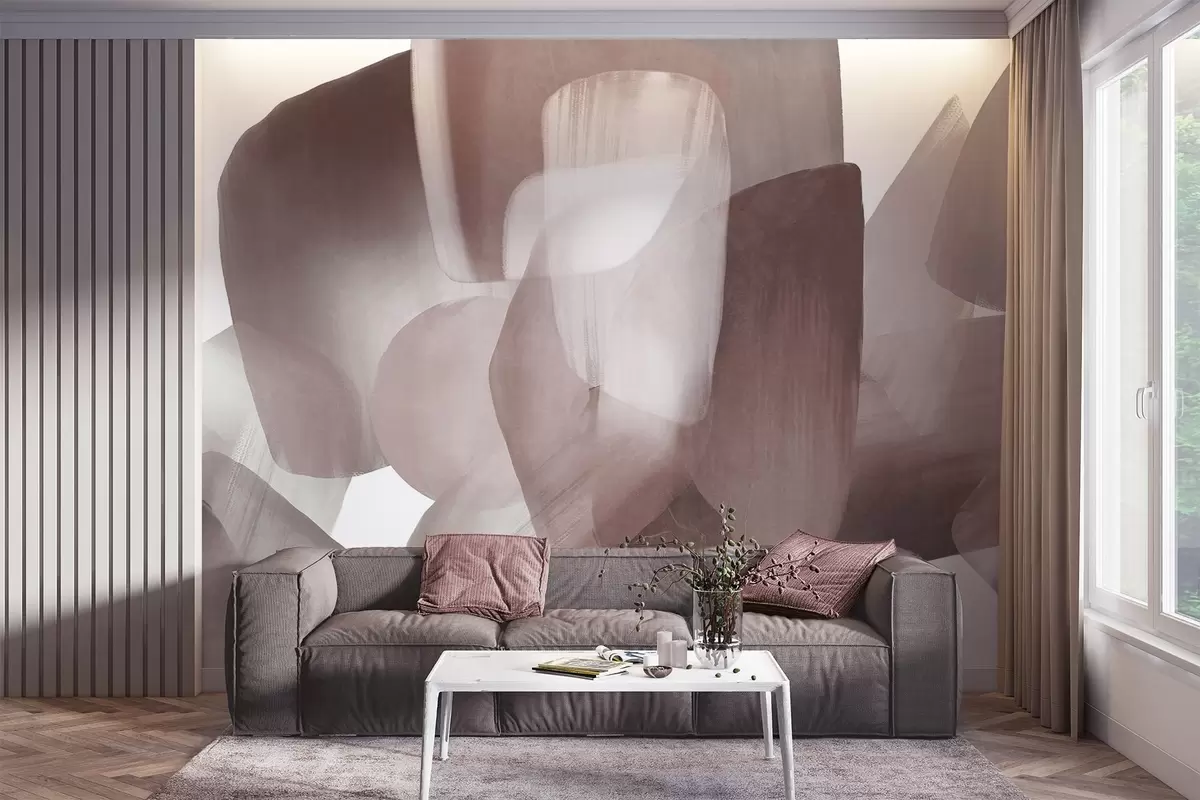 Zidne murale Apstraktni teksturirani oblici u prigušenim bordo i sivim bojama, s mekim rubovima i preklapajućim slojevima br. w09642v2