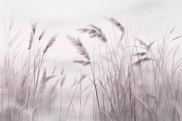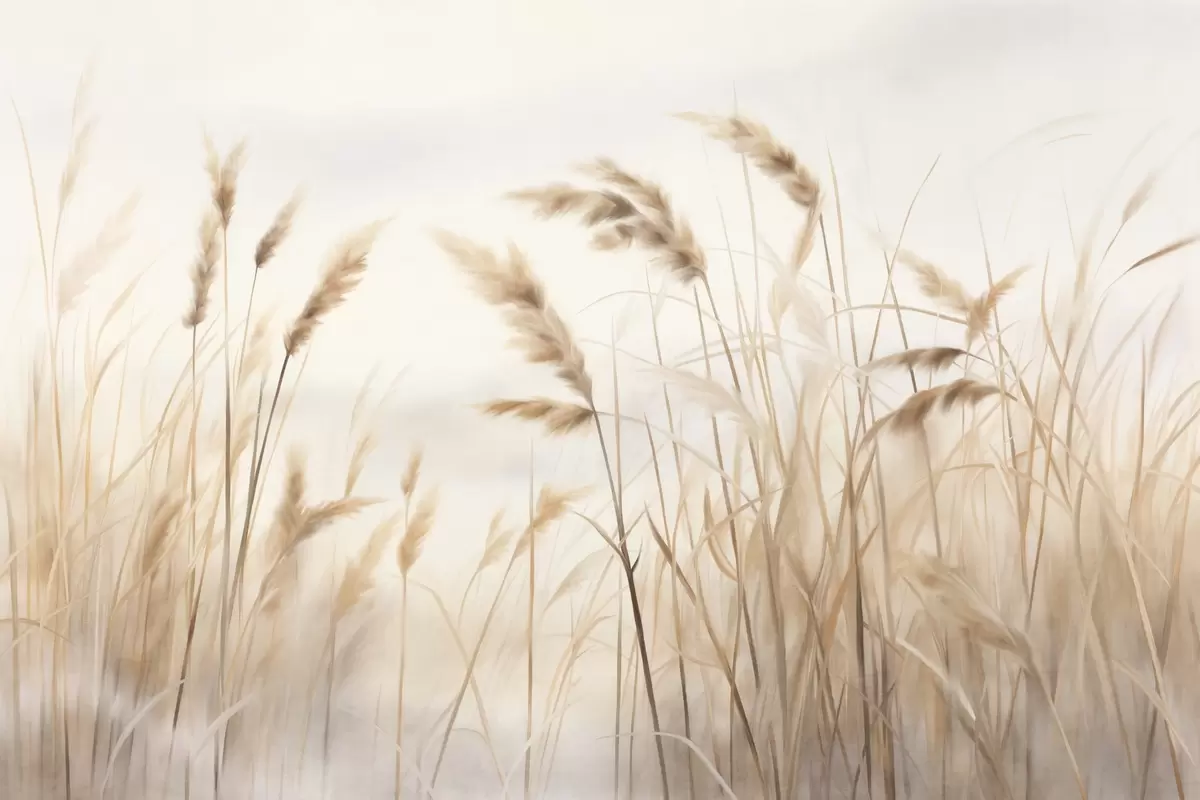 Zidne murale Visoka, teksturirana suha trava s klasjem pšenice u polju na mekoj, blijedoj pozadini br. w09648