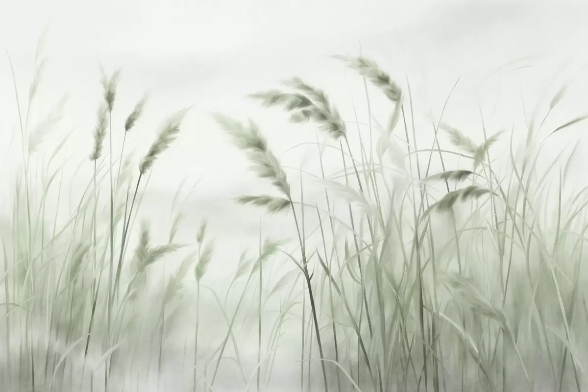 Zidne murale Visoka, teksturirana suha trava s klasjem pšenice u polju na mekoj, blijedoj pozadini br. w09648v1