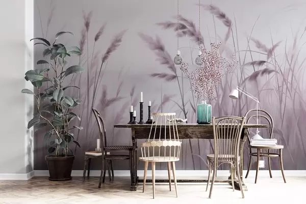 Zidne murale Visoka, teksturirana suha trava s klasjem pšenice u polju na mekoj, blijedoj pozadini br. w09648v2