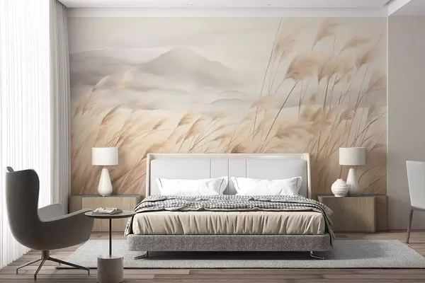 Zidne murale Teksturirani planinski krajolik s visokom, suhom travom pod maglovitim nebom br. w09649