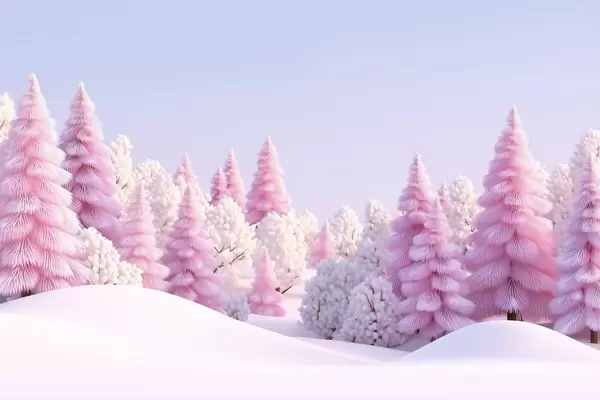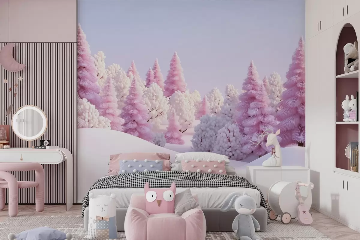 Zidne murale Snježna zimska šuma u ružičastim tonovima br. w09654