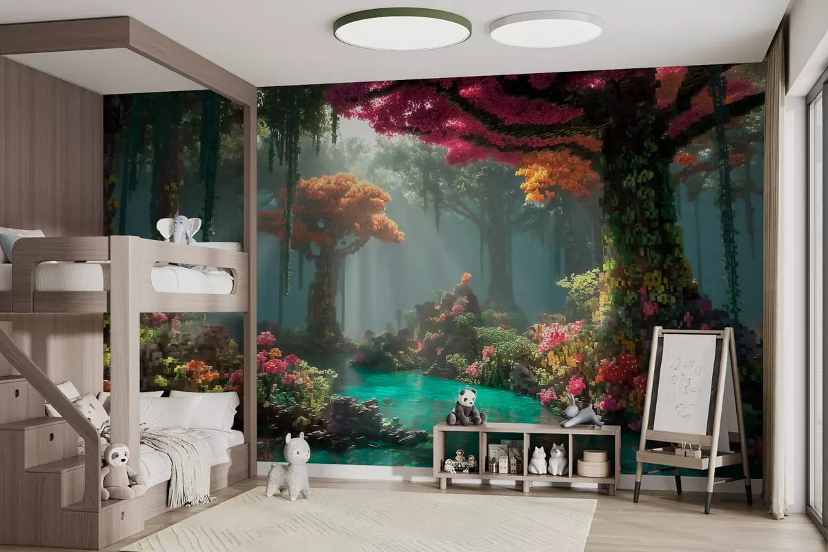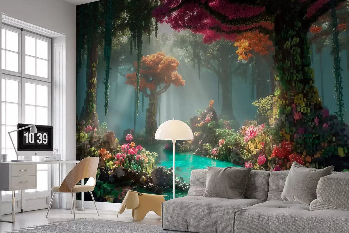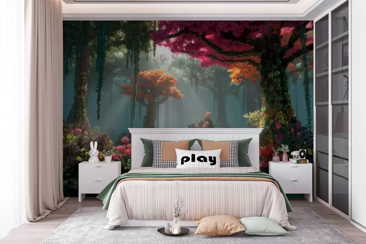 Zidne murale Pixel začarani šumski gaj inspiriran videoigrama br. w09683