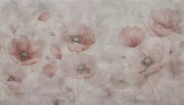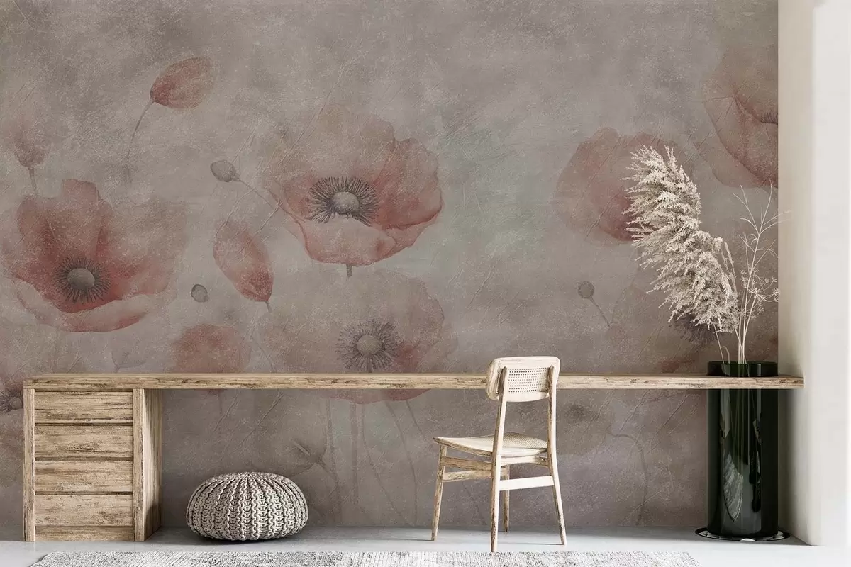 Zidne murale Veliki cvjetovi maka na zidu s antiknim efektom br. w09686