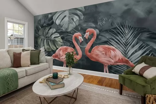 Zidne murale Par flaminga u tropskim biljkama br. w09687