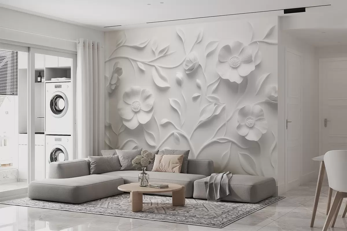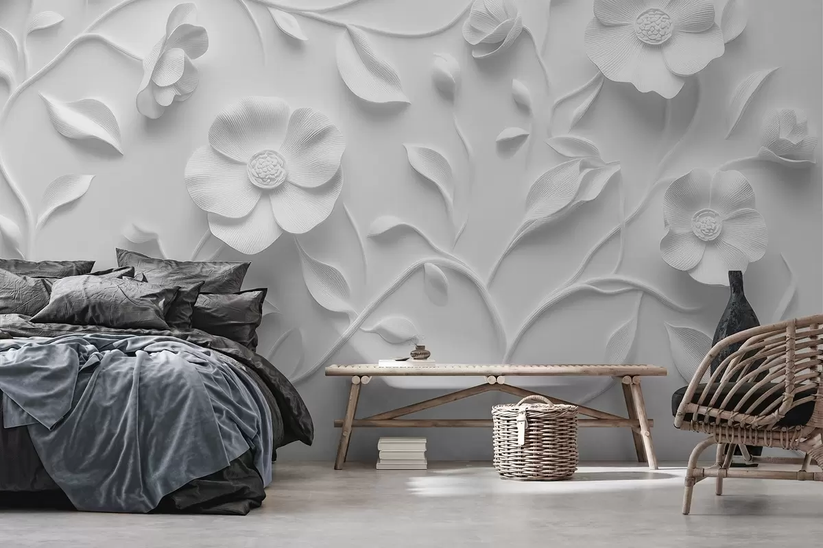 Zidne murale Sivi reljefni cvjetni ornament br. w09710