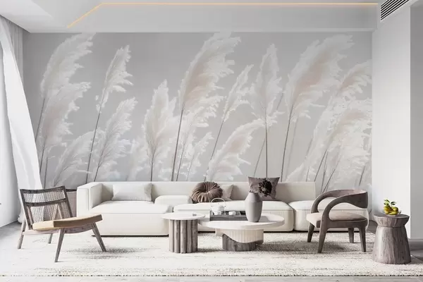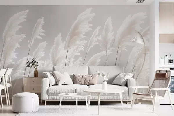 Zidne murale Mekana bijela pampas trava u blagom jutarnjem svjetlu br. w09717