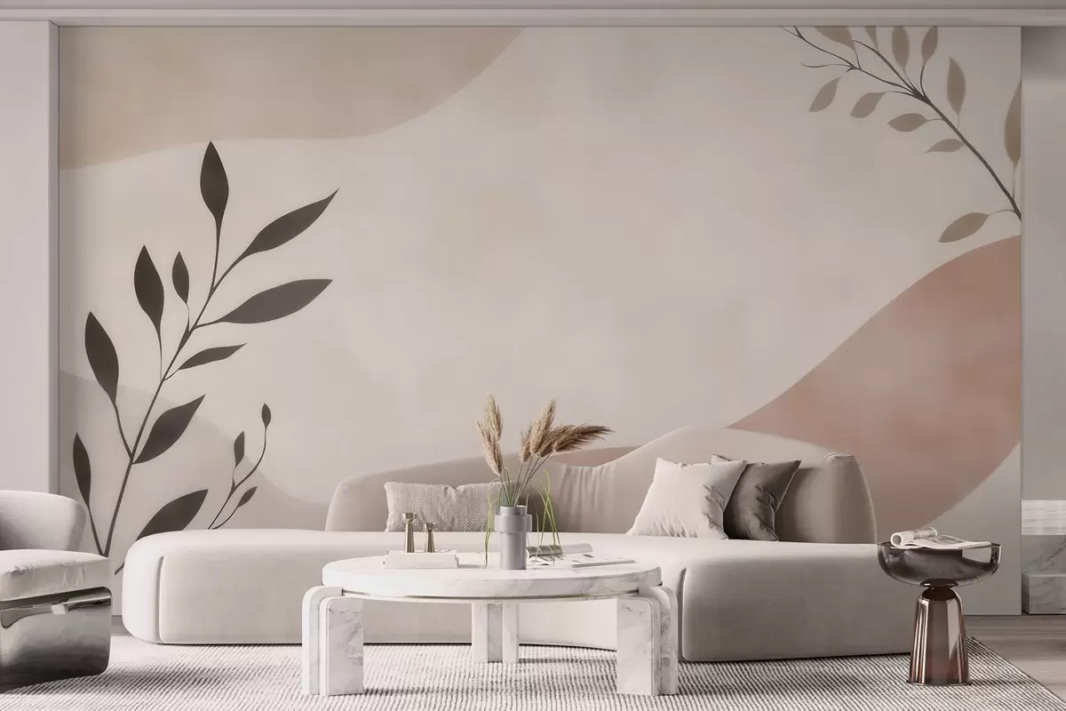 Zidne murale Apstraktni bež-breskvasti valovi s granama br. w09722