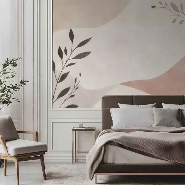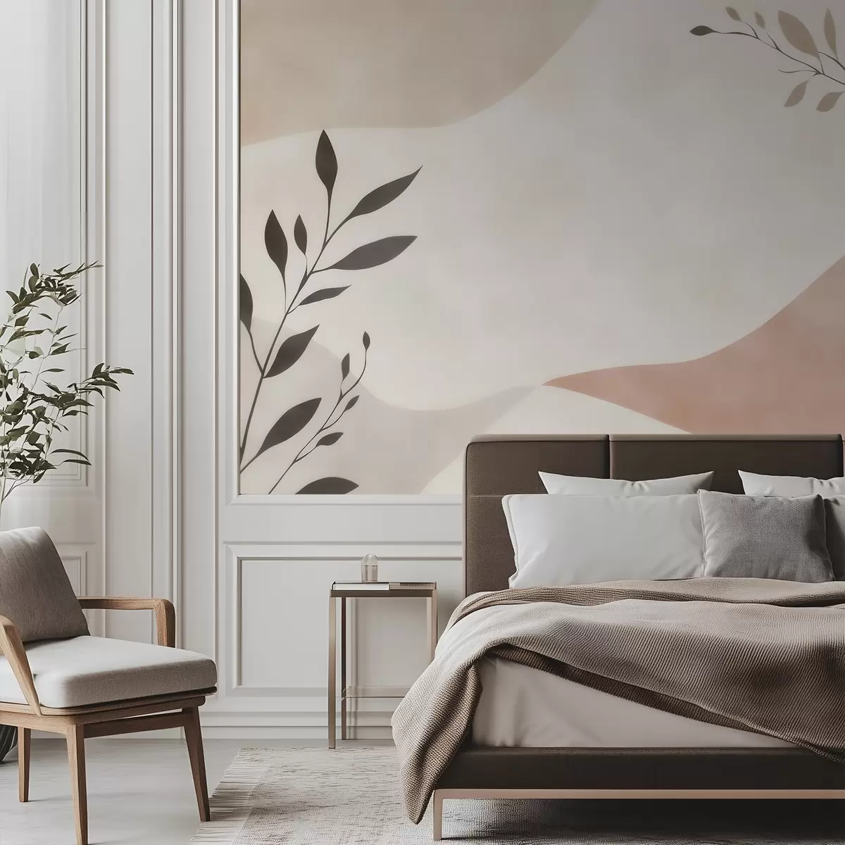 Zidne murale Apstraktni bež-breskvasti valovi s granama br. w09722