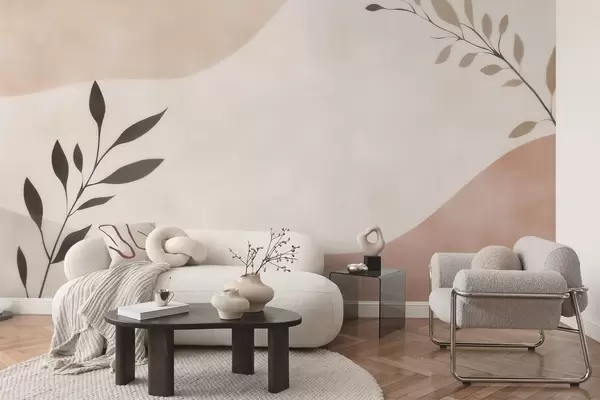 Zidne murale Apstraktni bež-breskvasti valovi s granama br. w09722