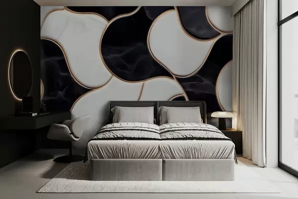 Zidne murale Apstraktna imitacija mramorne kompozicije u crno-bijelim tonovima sa žutim linijama br. w09733