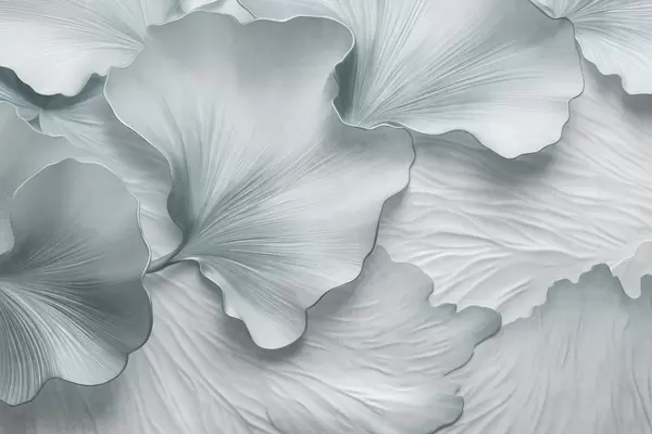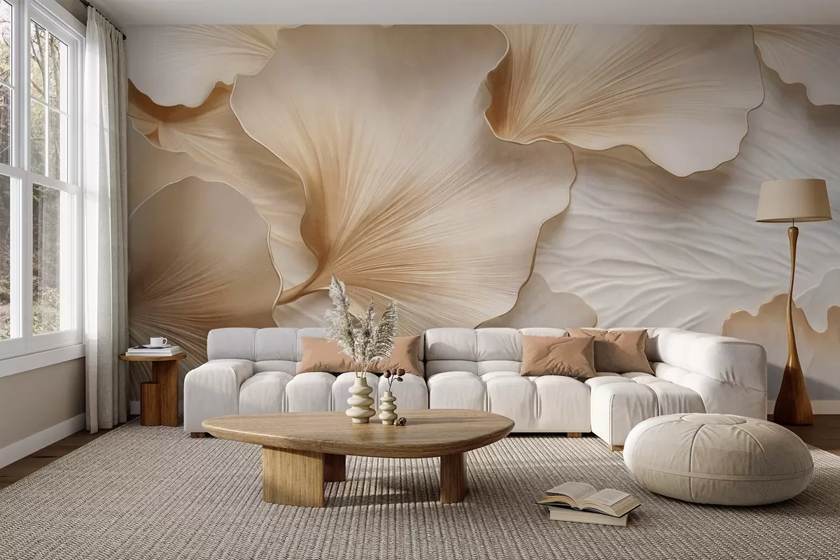 Zidne murale Teksturirane, bež i bijele latice listova ginka s nježnim organskim printom br. w09741