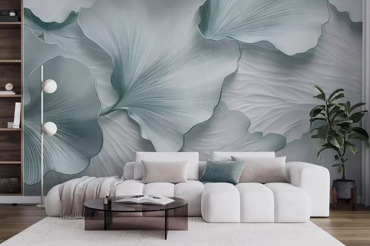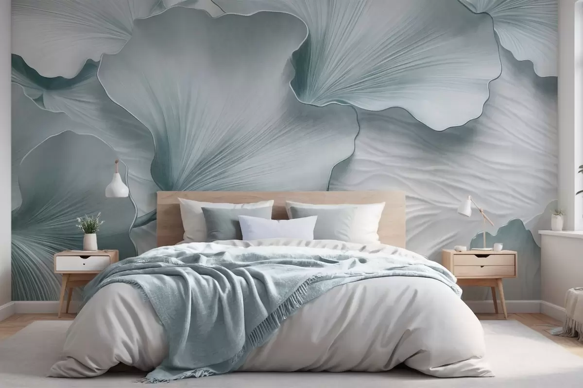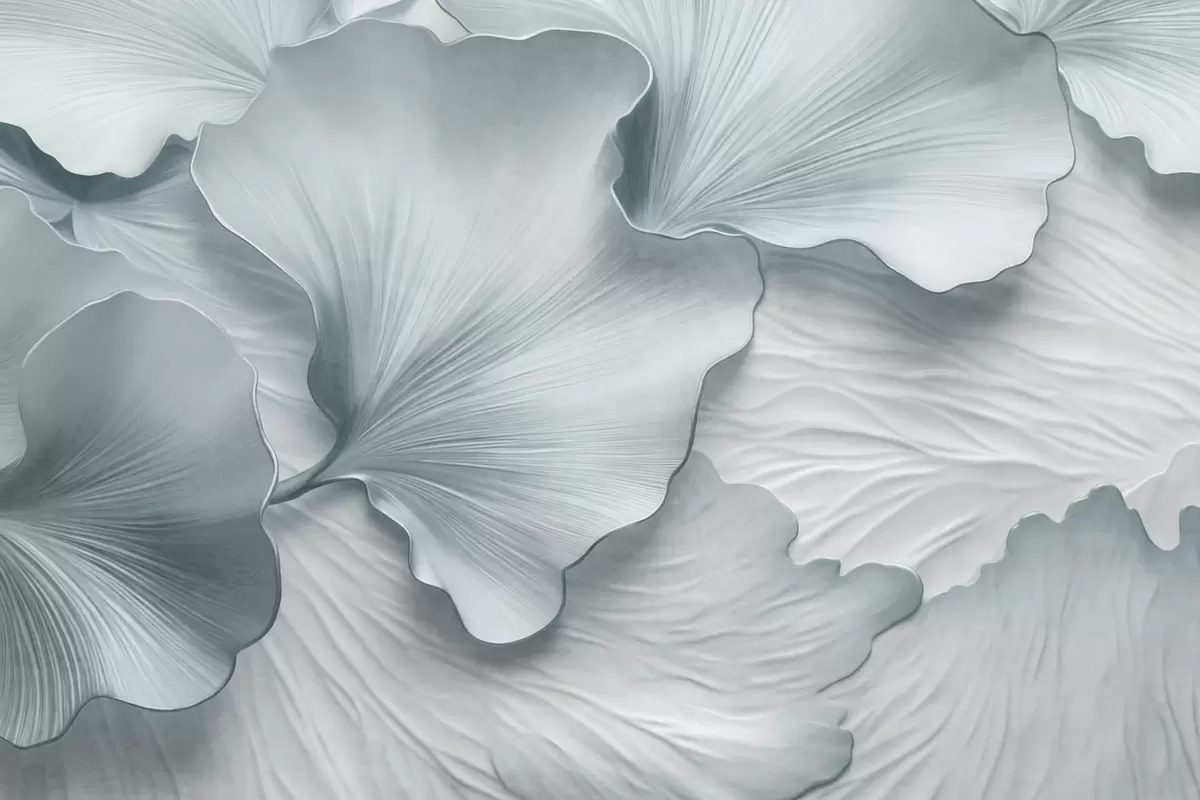 Zidne murale Teksturirane, plavo-bijele latice listova ginka s nježnim organskim printom br. w09741v1