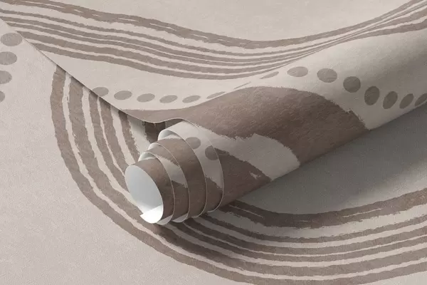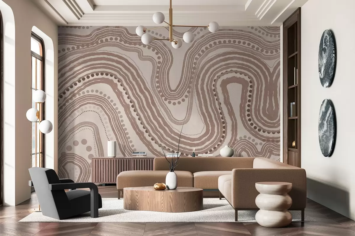 Zidne murale Apstraktne smeđe i bež valovite linije i točkice, moderna teksturirana umjetnost br. w09747v1