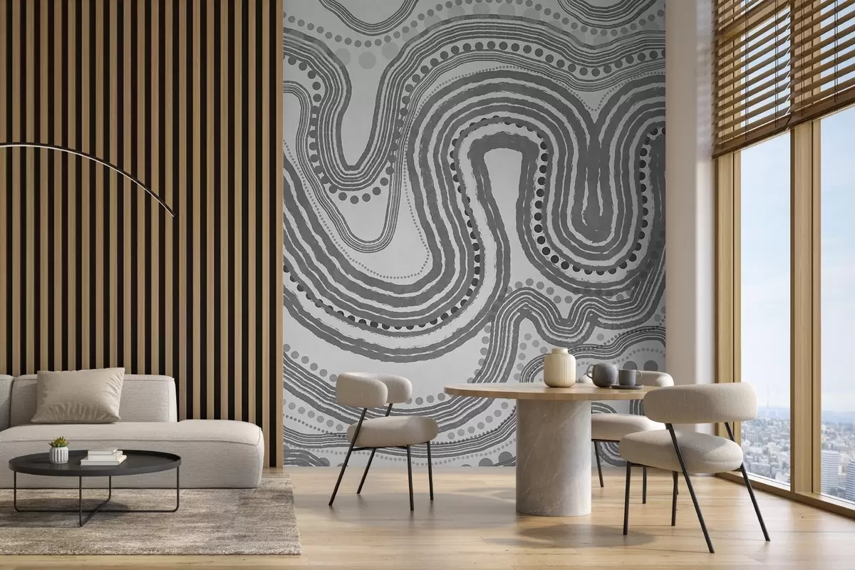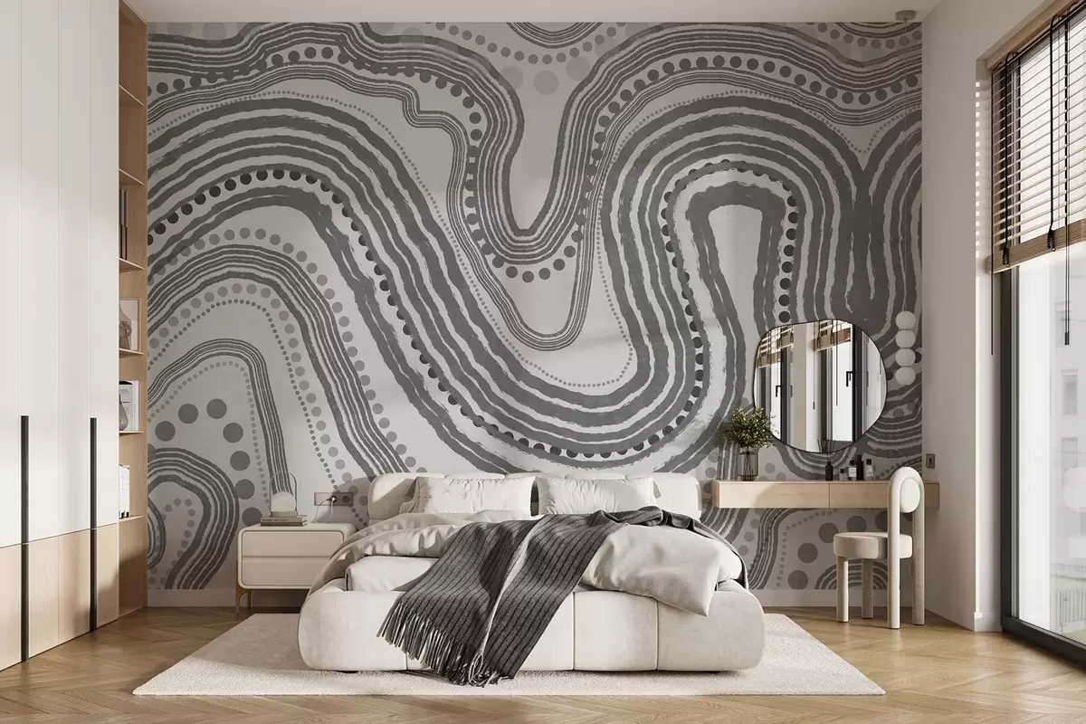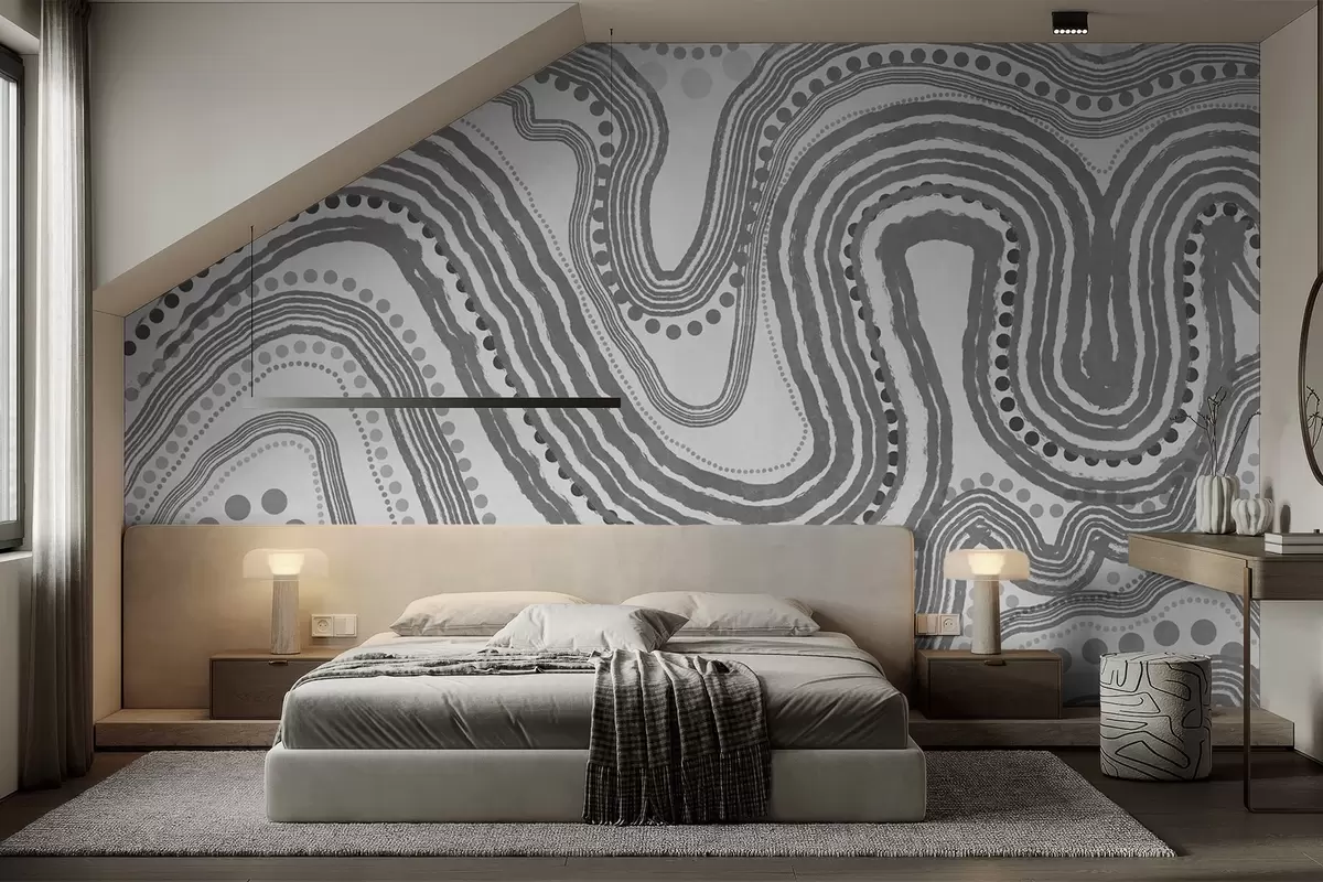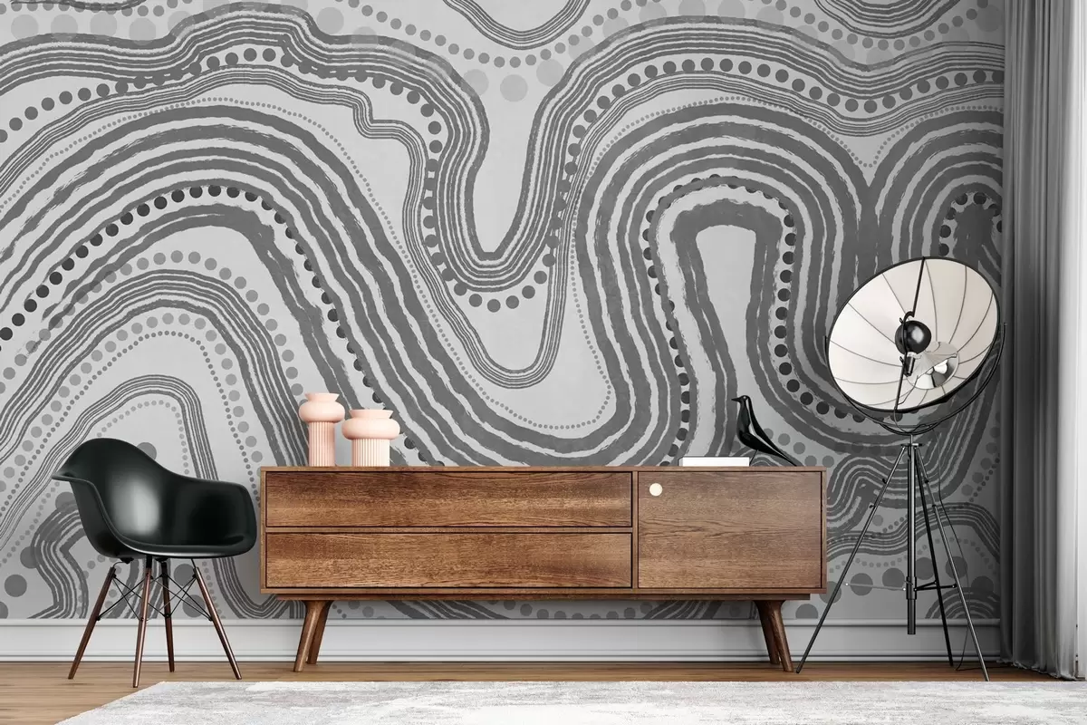 Zidne murale Apstraktne tamnosive valovite linije i točkice, moderna teksturirana umjetnost br. w09747v2
