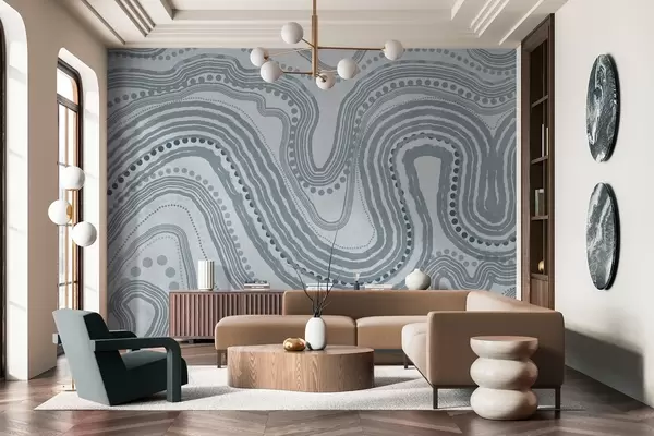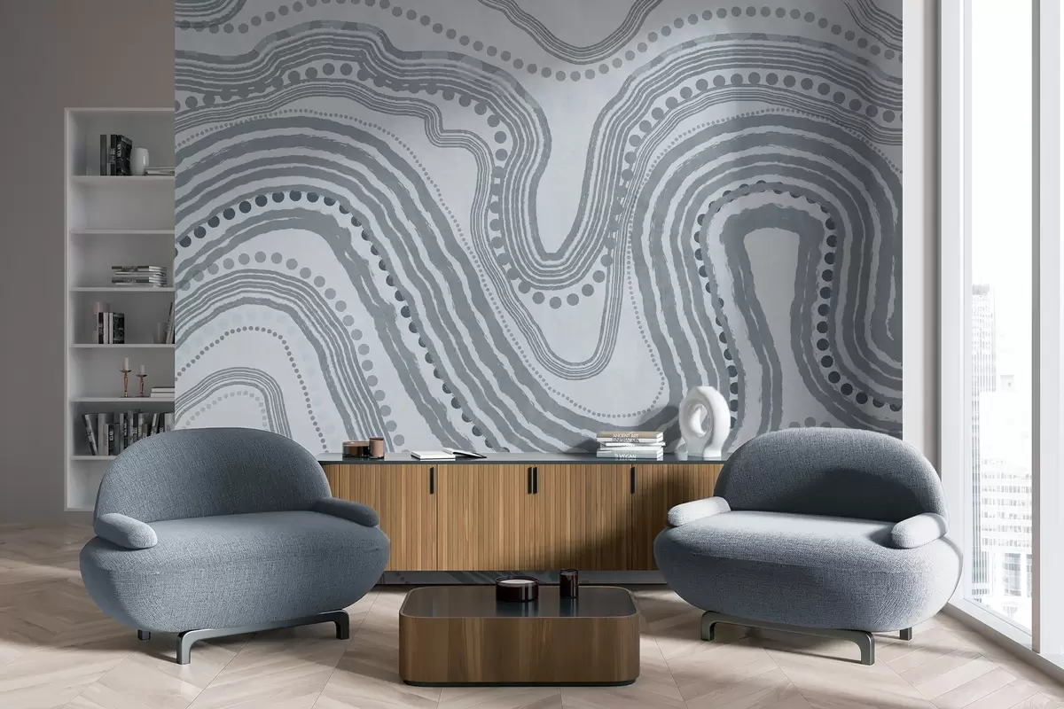 Zidne murale Apstraktne plave valovite linije i točkice, moderna teksturirana umjetnost br. w09747v3