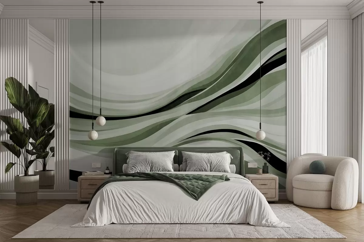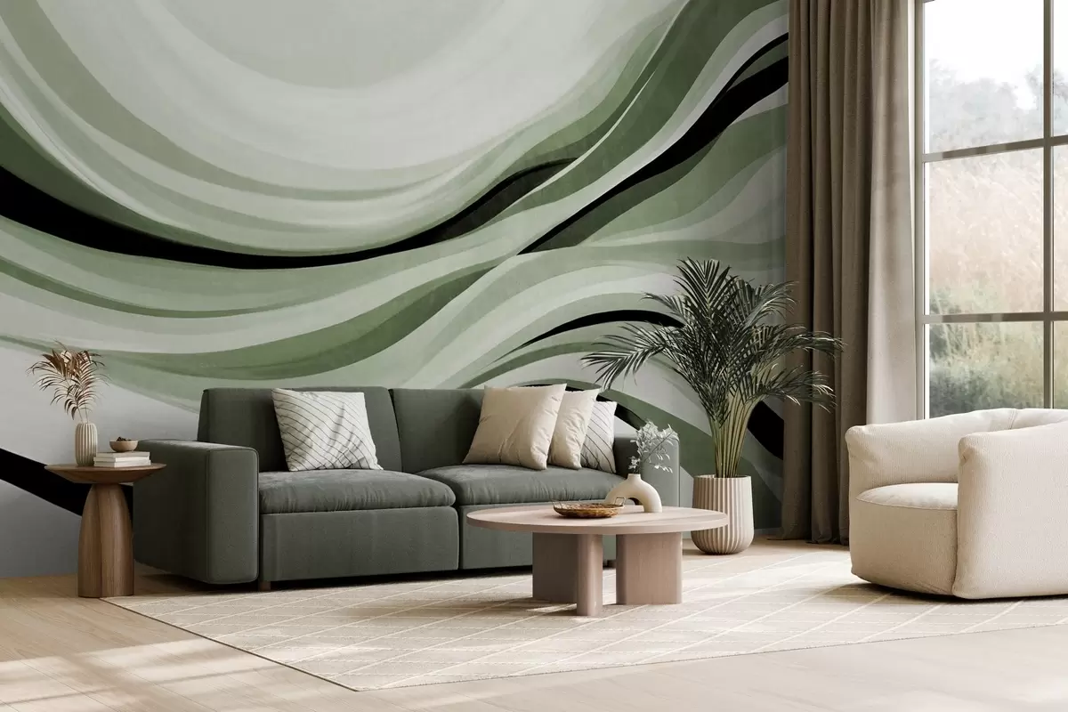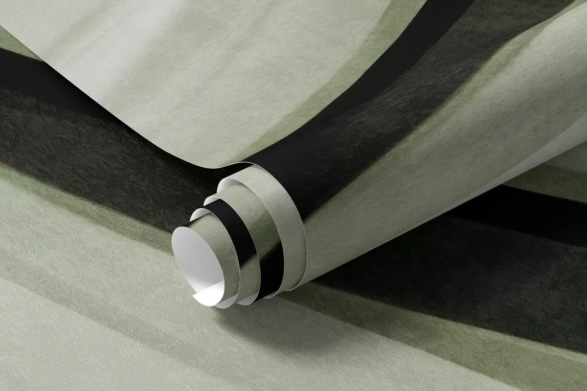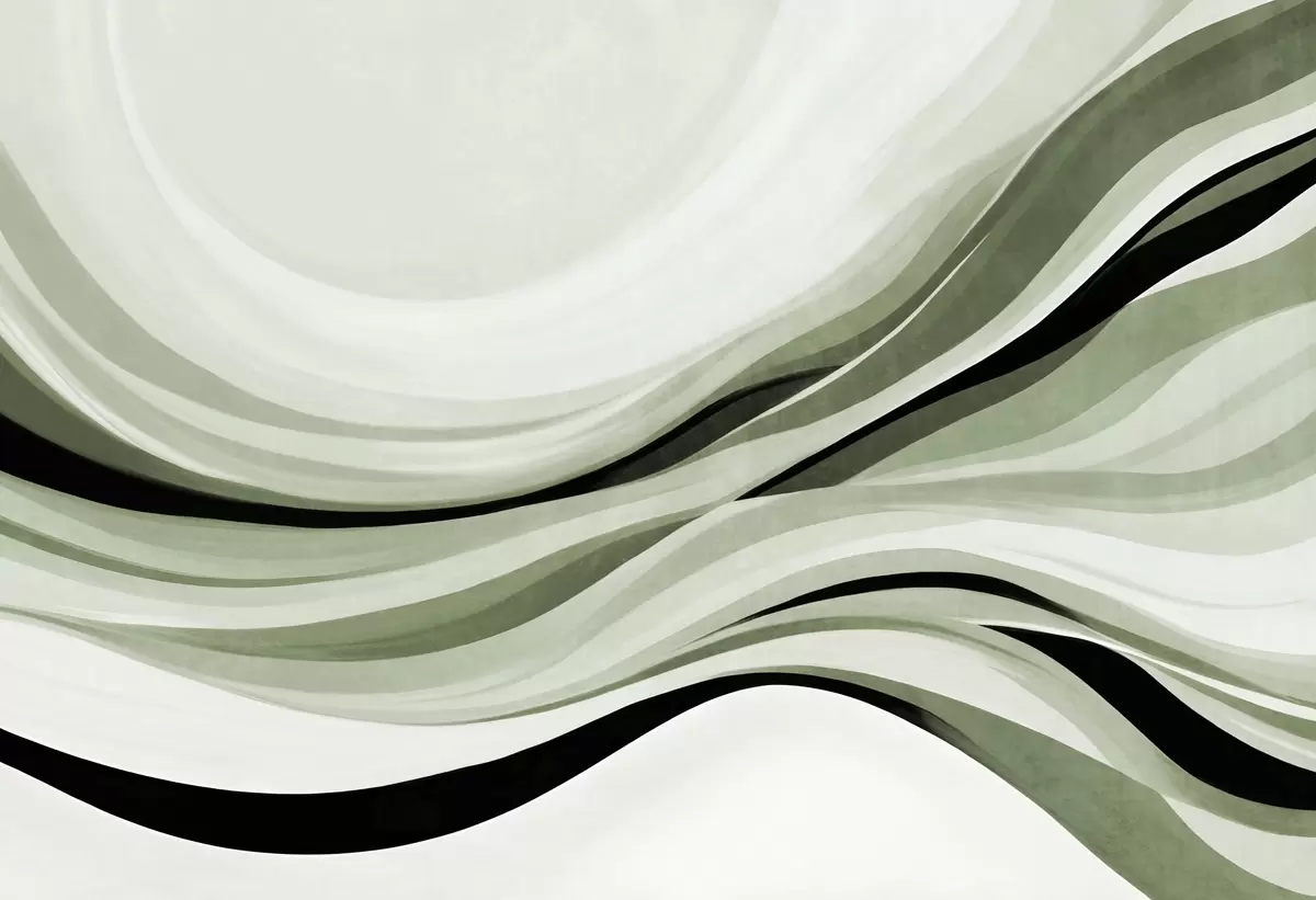 Zidne murale Apstraktne valovite linije u nijansama zelene i crne na svijetloj pozadini, teksturirana umjetnost br. w09748v1