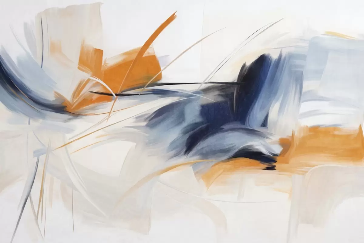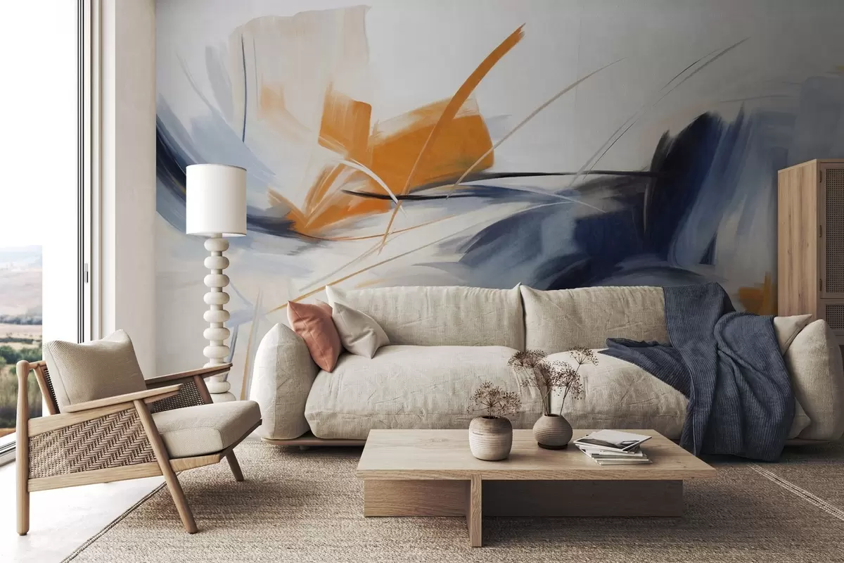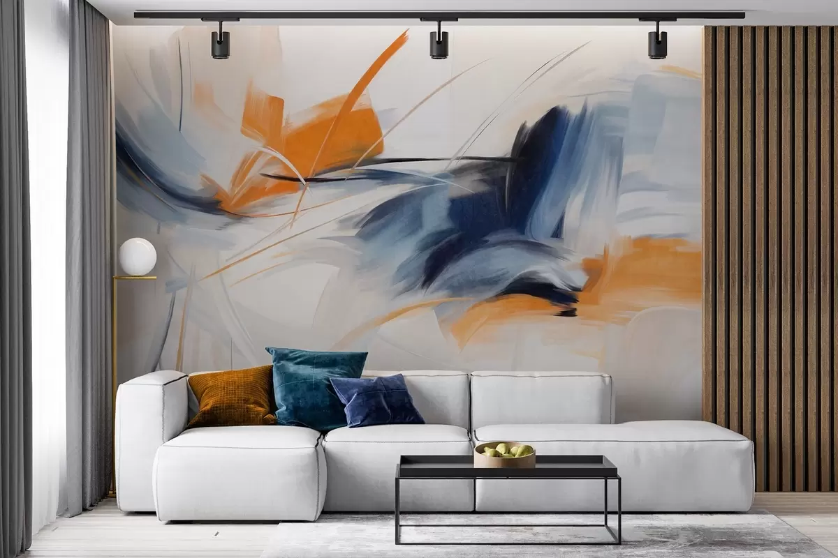 Zidne murale Apstraktni stil slikanja s teksturiranim potezima kista u narančastoj i plavoj boji br. w09755