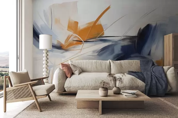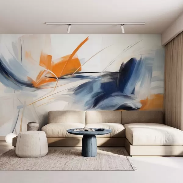 Zidne murale Apstraktni stil slikanja s teksturiranim potezima kista u narančastoj i plavoj boji br. w09755