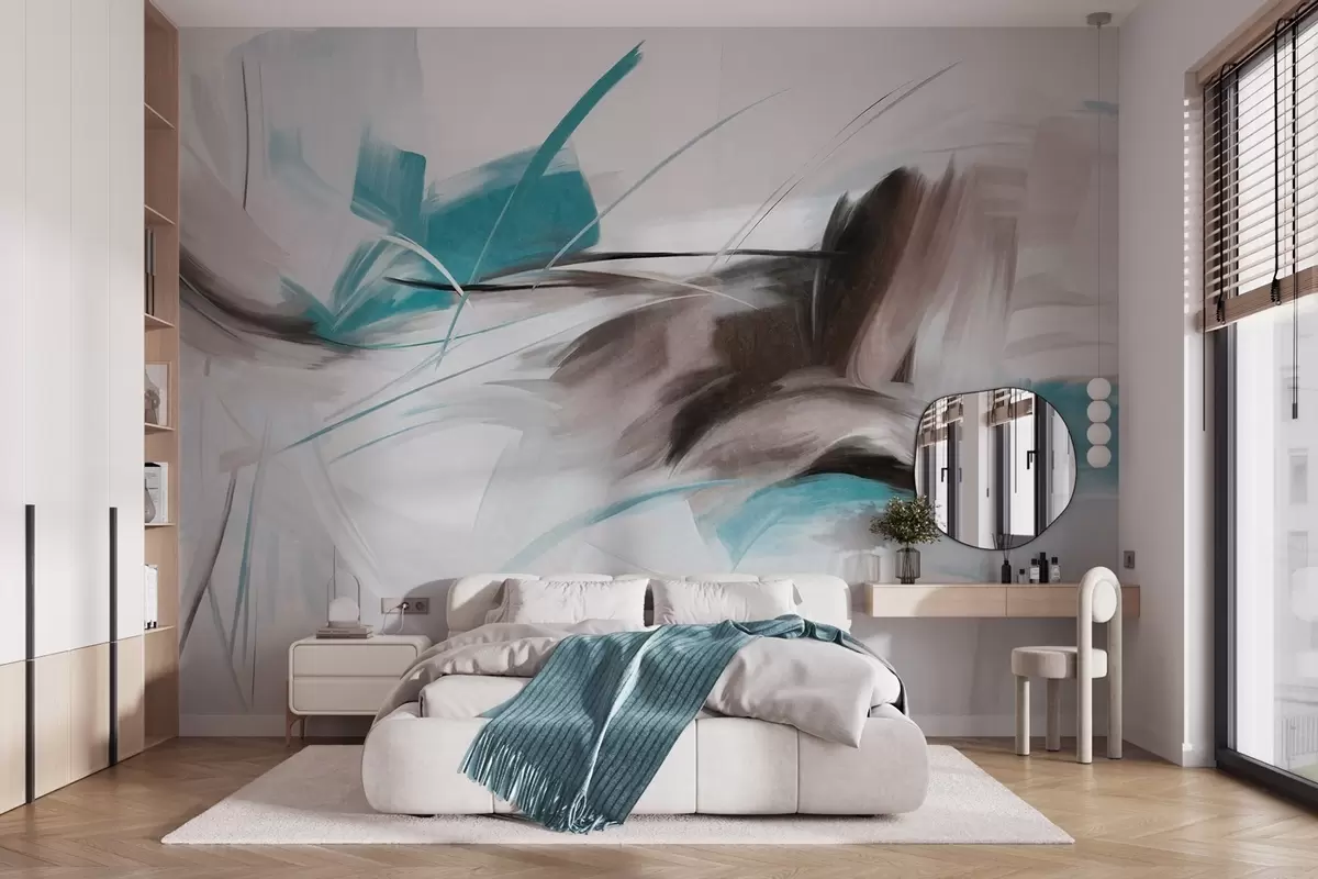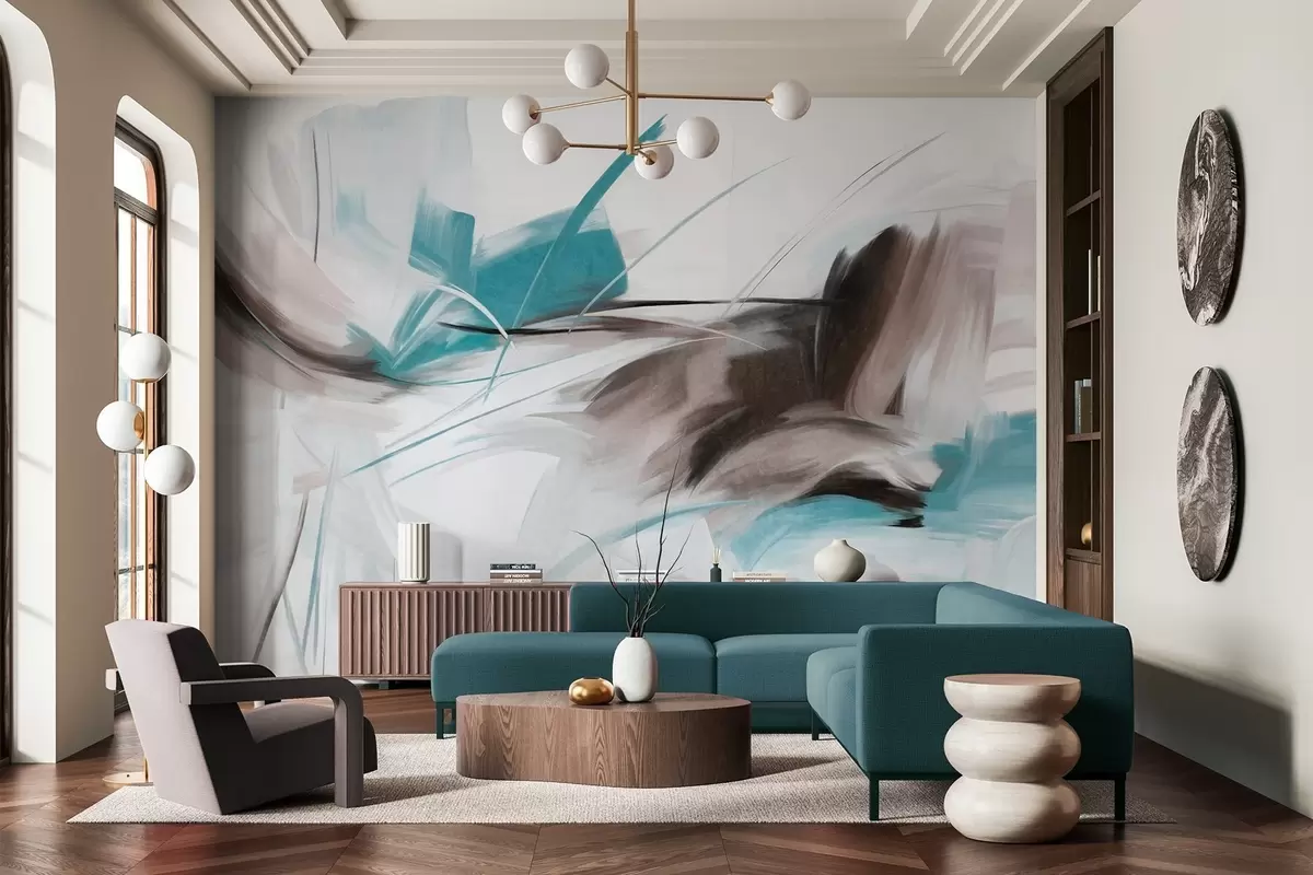 Zidne murale Apstraktni stil slikanja sa smeđim i plavim teksturiranim potezima kista br. w09755v1